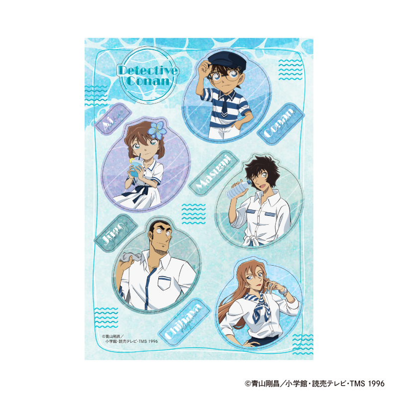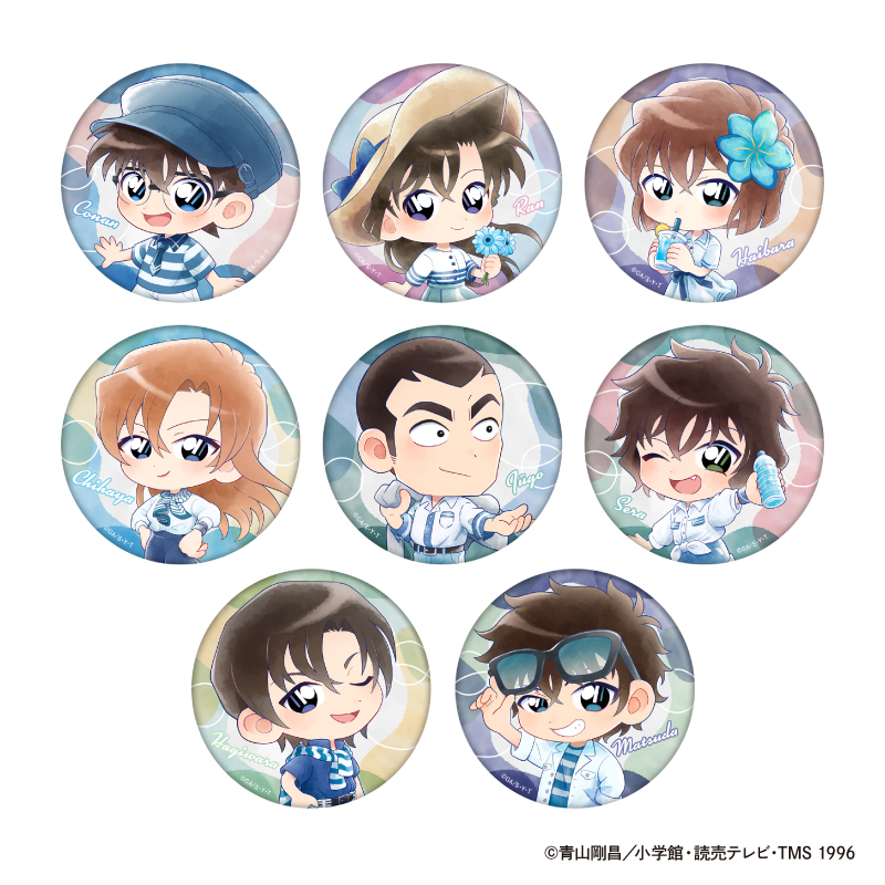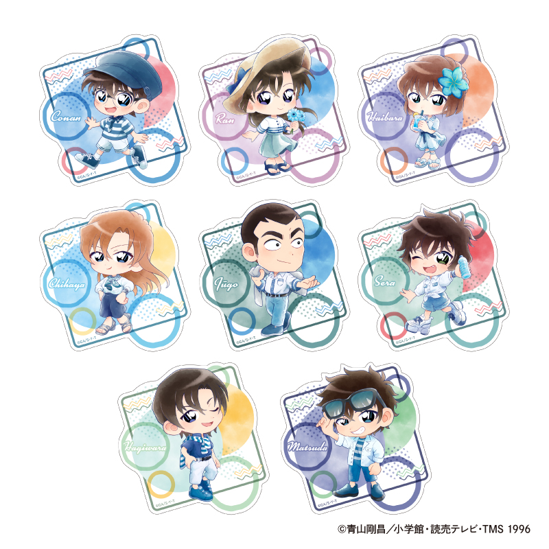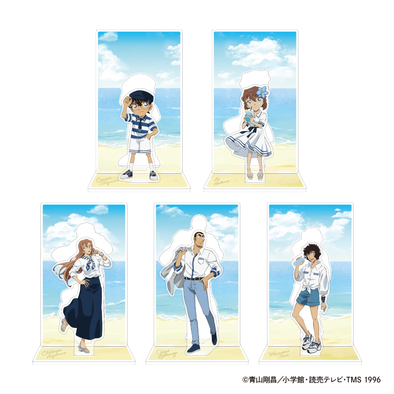江戸川コナン、灰原哀、萩原千速、横溝重悟、世良真純たちがリゾートファッションに身を包んだ、等身 & デフォルメ姿の『Seaside』イラストが解禁!「トレーディング缶バッジ」や「背景枠付きアクリルスタンド」など2つのデザインが楽しめる全11種がラインナップ。