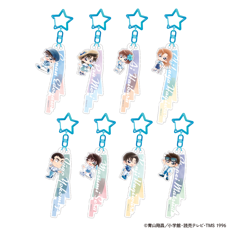 江戸川コナン・毛利蘭・灰原哀・萩原千速・横溝重悟・世良真純・萩原研二・松田陣平ら8人にミニキャラ姿に癒やさる「トレーディングミニアクリルスタンド」「2連アクリルネームチャーム」「クリアファイル」など多数ラインナップ。