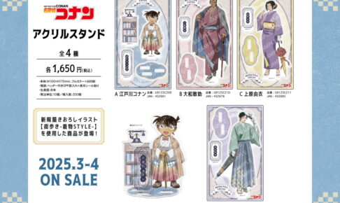 週刊少年サンデー(小学館)にて連載中「青山剛昌」先生による大人気漫画を原作としたアニメ「名探偵コナン」から、「街歩き -着物STYLE-」&「ゆるスタmini 第3弾」の新作アイテムが2025年3月より発売される。