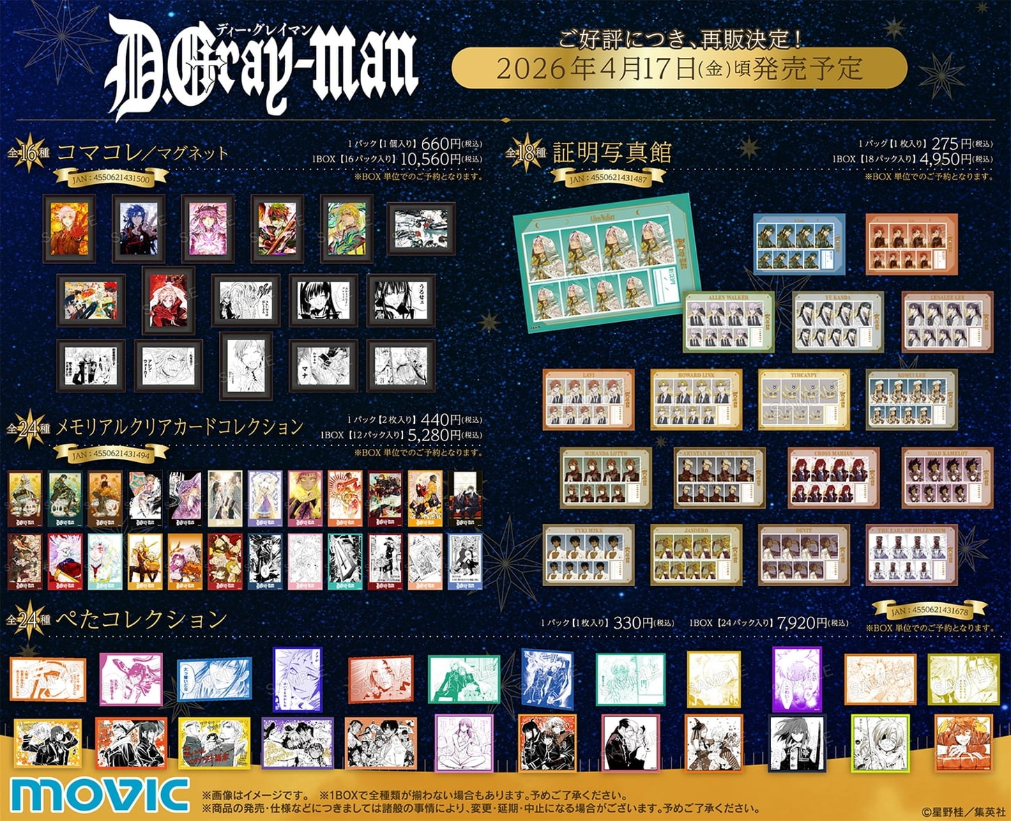『ジャンプSQ.RISE』で連載中の星野桂先生による人気漫画『D.Gray-man』より、2025年10月の「星の祝祭フェア」で反響を呼んだ描き下ろしグッズが、2026年4月に待望の再販決定。