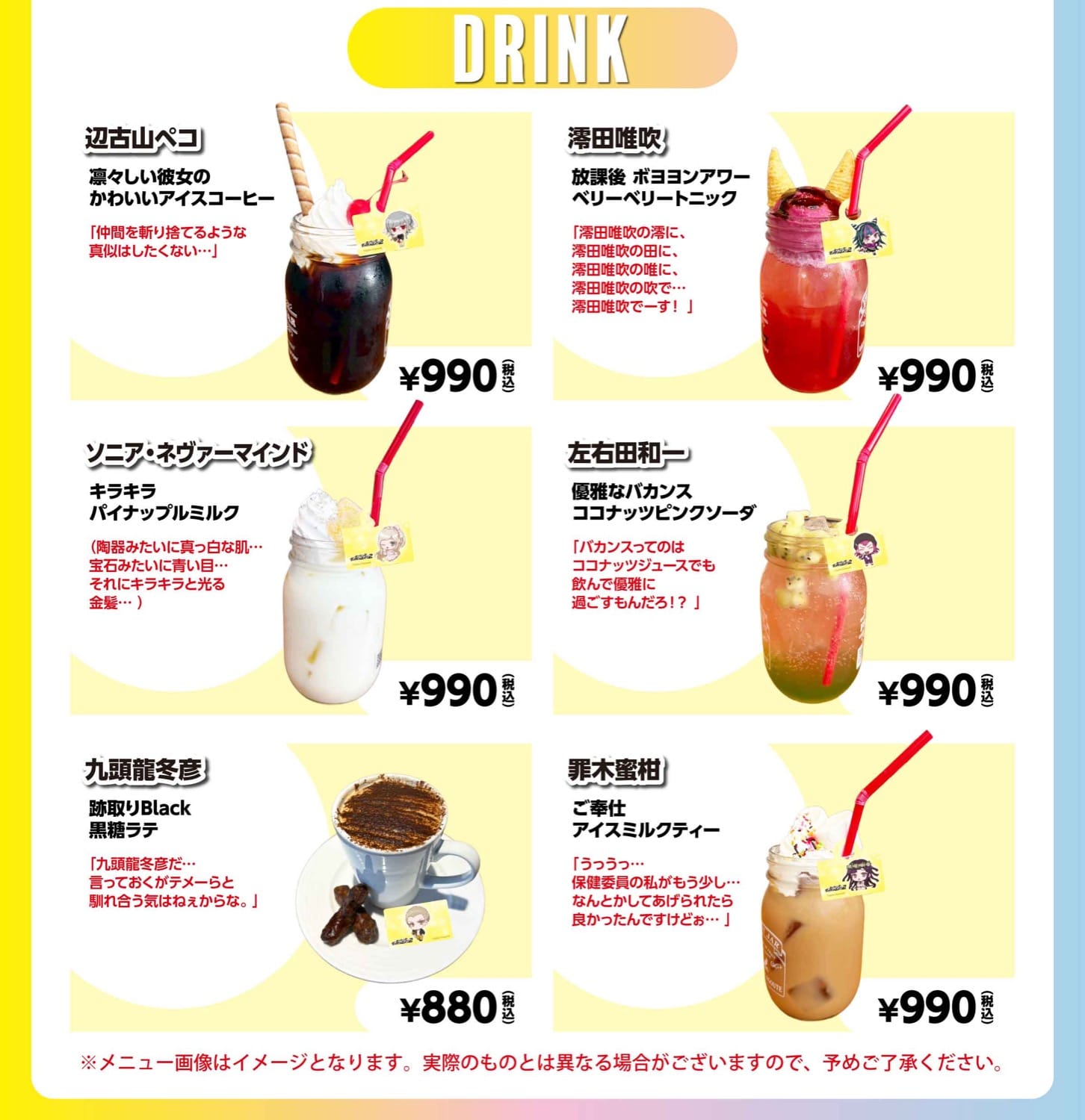 「ダンガンロンパ」コラボカフェでは、作品の世界観やキャラクターをイメージしたコラボメニューがお楽しみいただける他、誕生花などをモチーフにした総勢50名の描き下ろしイラストを使用したコラボカフェ限定グッズが登場!