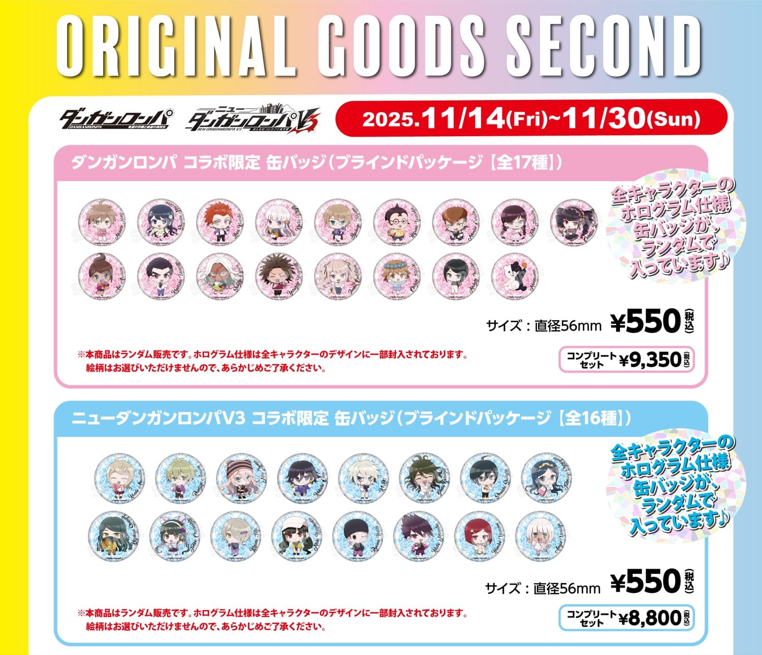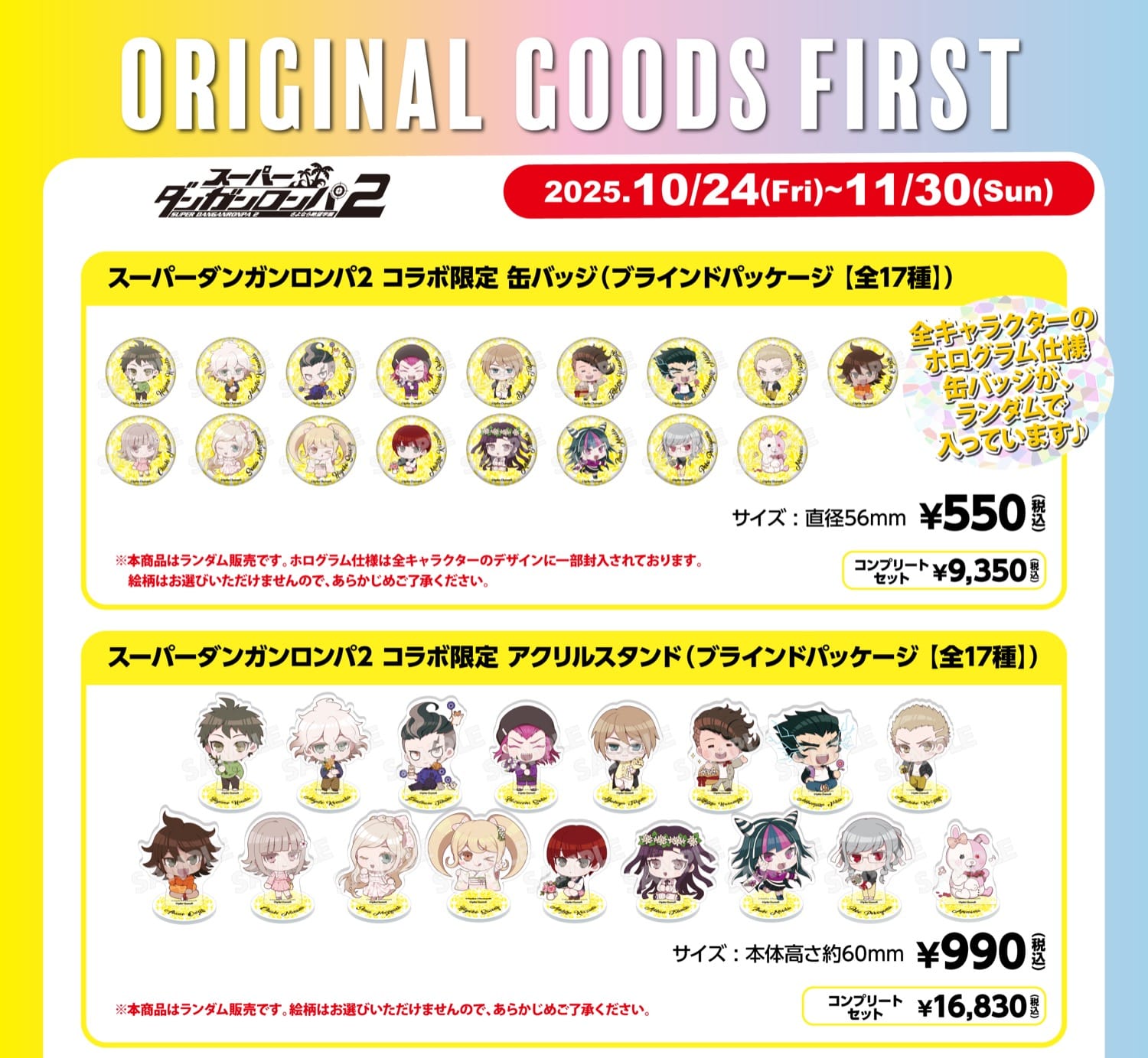 2025年10月24日〜11月30日まで開催される「ダンガンロンパ」カフェでは、描き起こしイラストを使用した「缶バッジ」「アクリルスタンド」「スタッキングマグカップ」などのコラボカフェ限定グッズが多数登場!