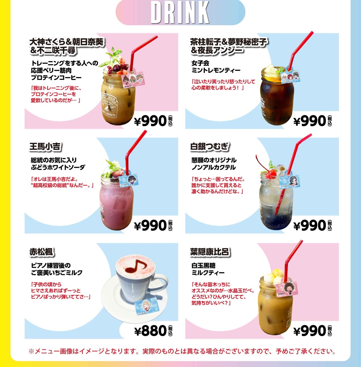 さらに、来場特典として「オリジナルA3ランチョンマット」を1枚、コラボメニューを注文すると特典として「オリジナルコースター」をランダムに1枚プレゼント!