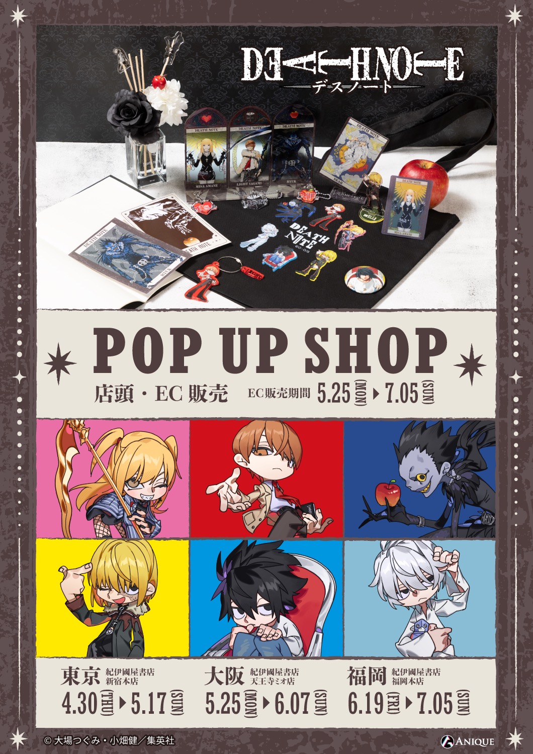 大場つぐみ先生原作・小畑健先生作画の漫画「DEATH NOTE (デスノート)」× Anique (アニーク)のポップアップストアが、紀伊國屋書店 (新宿本店・天王寺ミオ店・福岡本店)にて2026年4月30日〜7月5日まで開催される。
