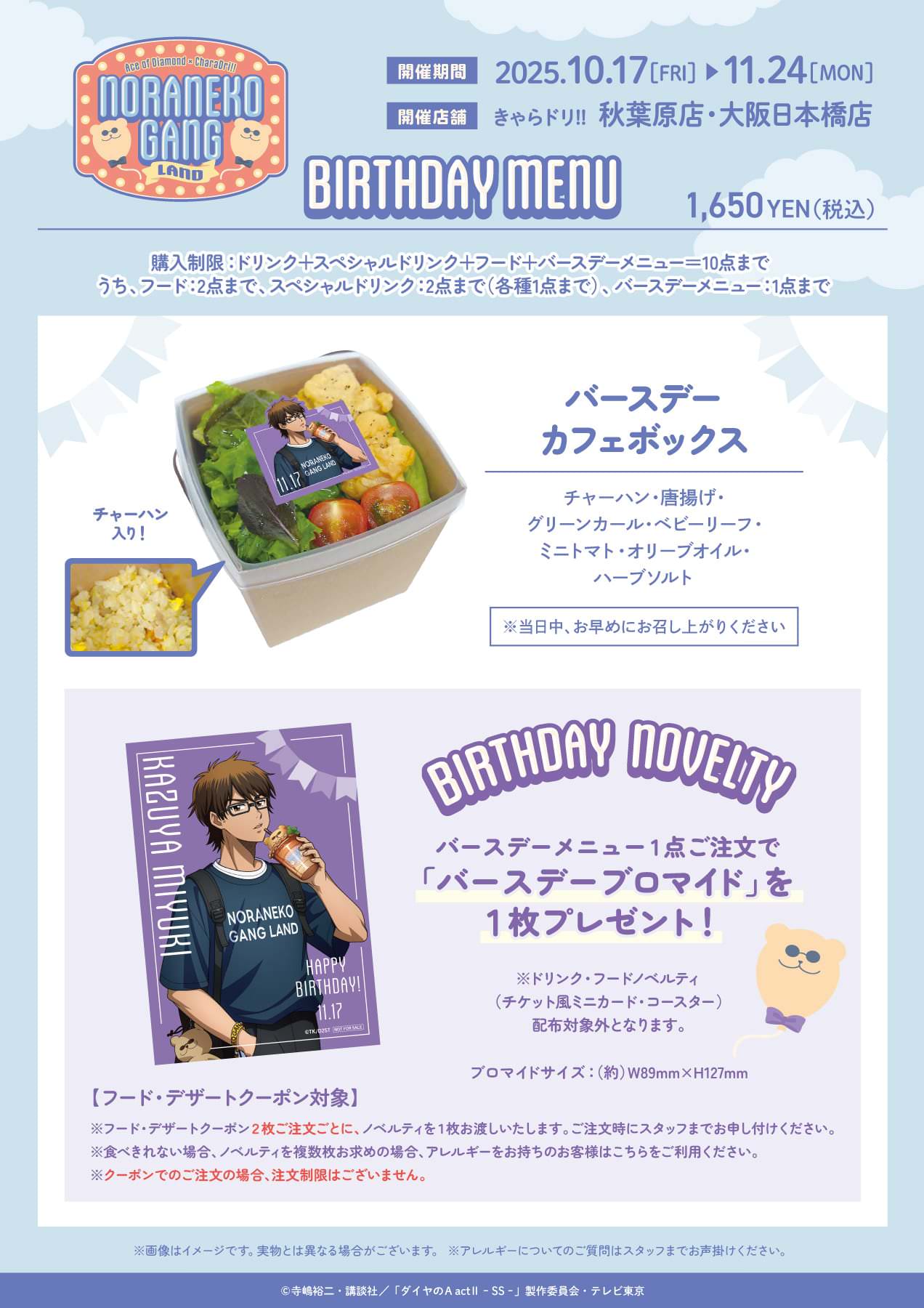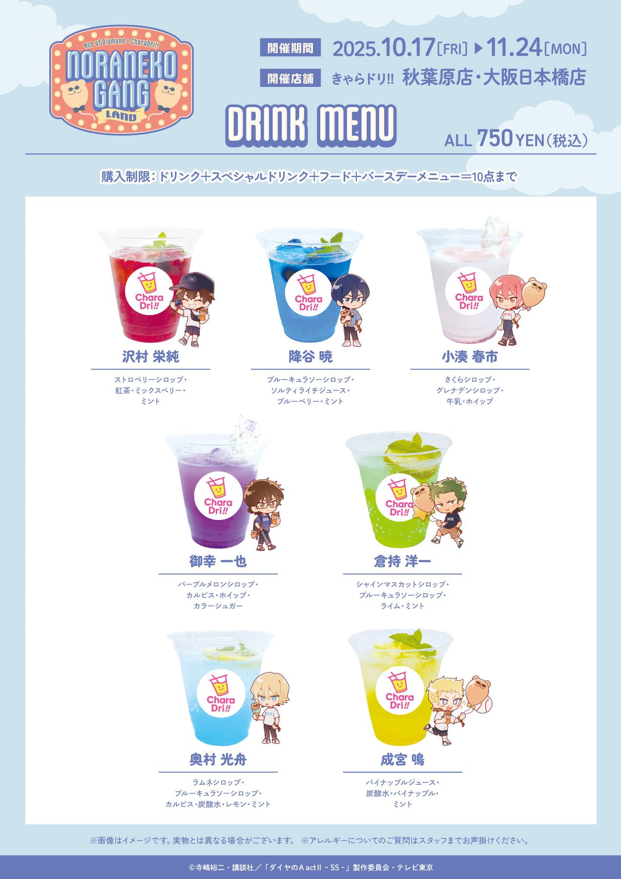 週刊少年マガジンにて連載された、寺嶋裕二先生による大人気漫画を原作とするTVアニメ「ダイヤのA actⅡ Second Season」× きゃらドリ!! 秋葉原/大阪日本橋にて、2025年10月17日〜11月24日までテイクアウトドリンクスタンドコラボが開催される。
