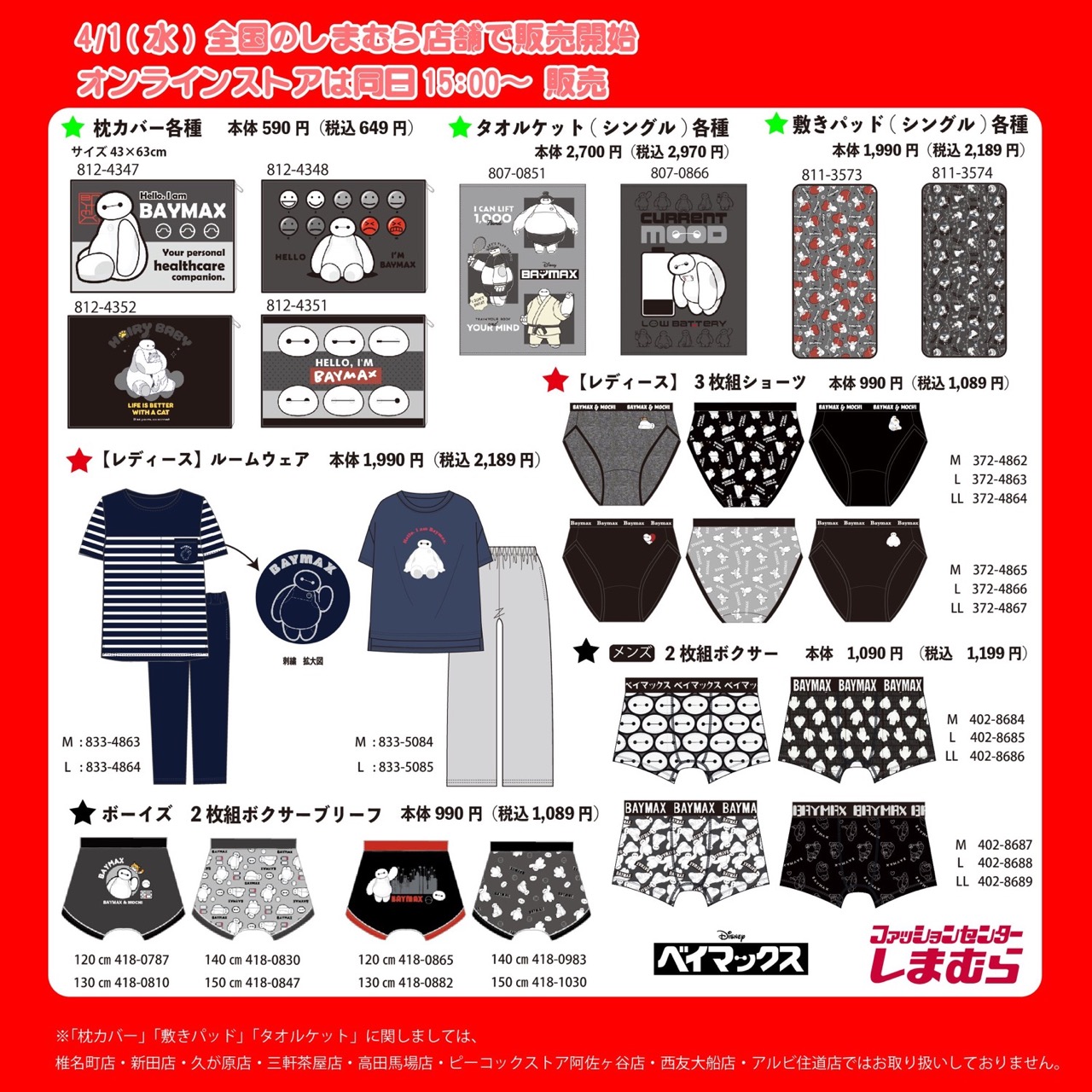 4/1(水)より「#ベイマックス」のグッズが全国のしまむら店舗にて販売!
