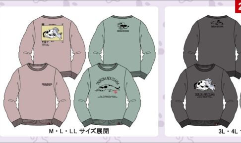 今回は4色のトレーナーがラインナップ。裏に犬くんと猫さまをプリントしたタイプと、表に猫さま・裏に犬くんをプリントしたタイプが2色・2サイズずつで展開される。