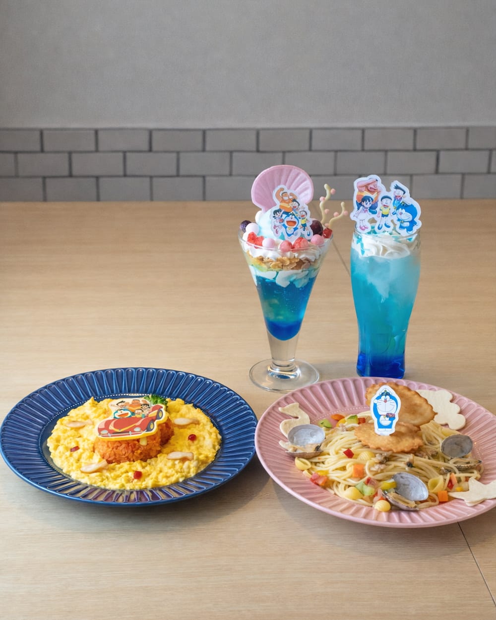 海の幸をふんだんに使ったパスタ、映画に登場するひみつ道具「水中バギー」のオムライスなど、映画の世界観をモチーフとしたコラボメニューを提供!
