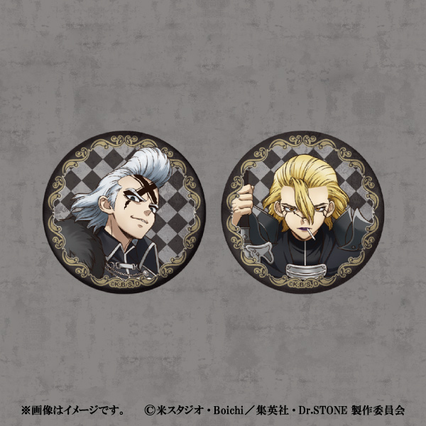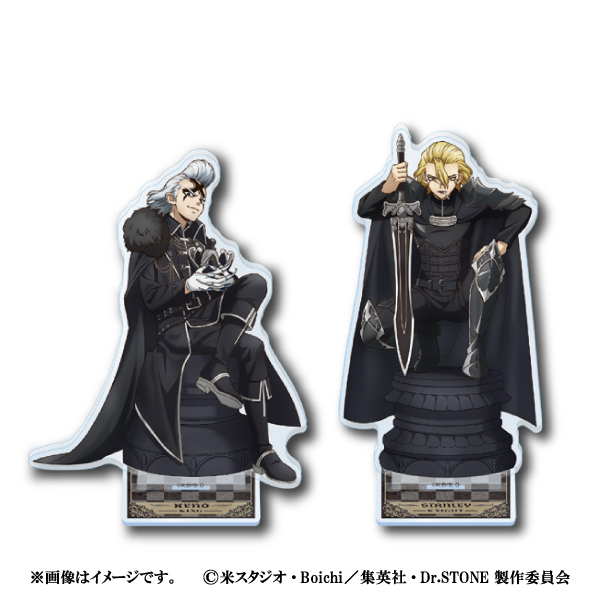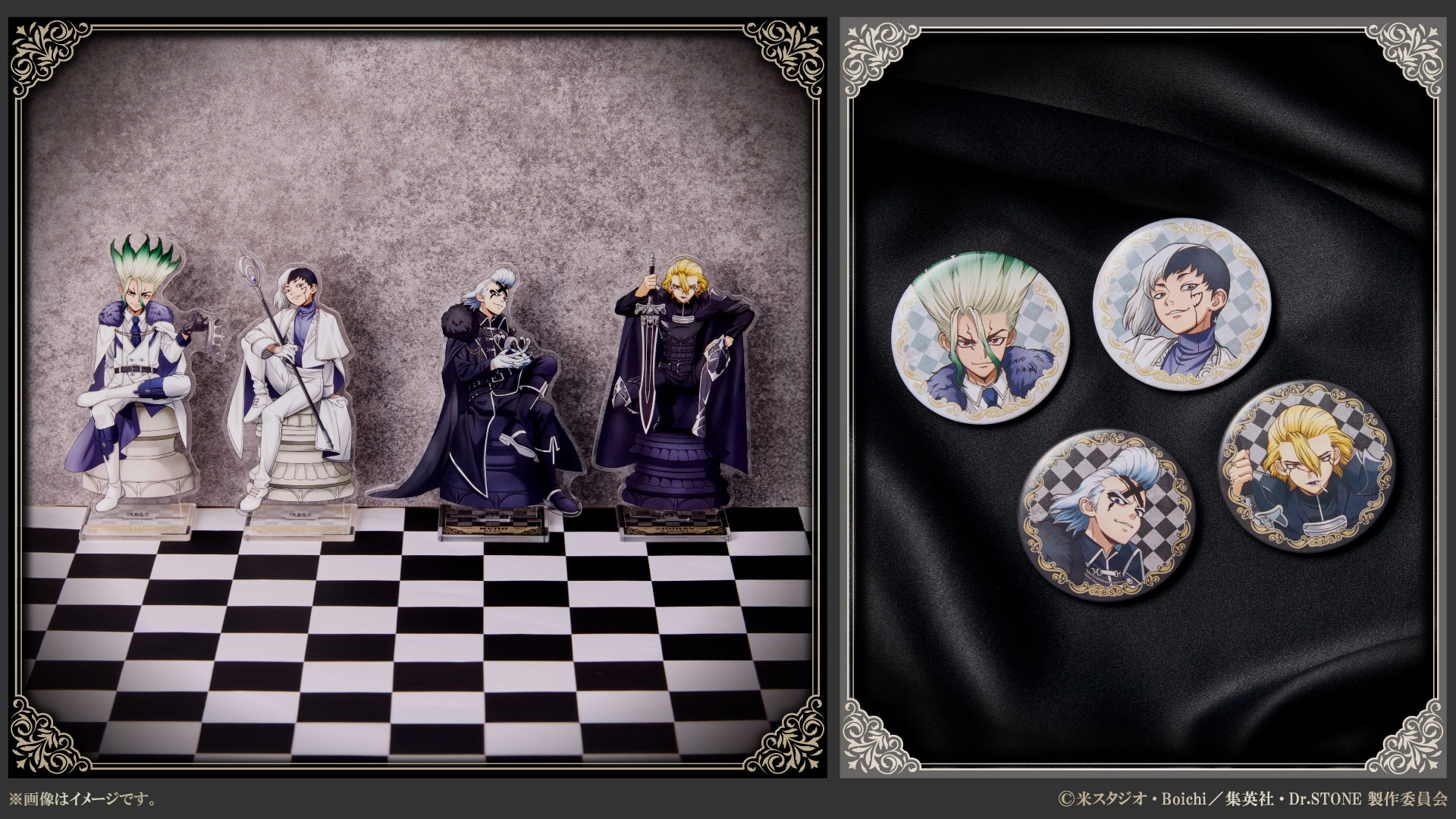 「Dr.STONE × ファミリーマート全国」では、チェスをテーマとした衣装の新規描き下ろしイラストを使用した「アクリルスタンド」と「缶バッジ」が登場!