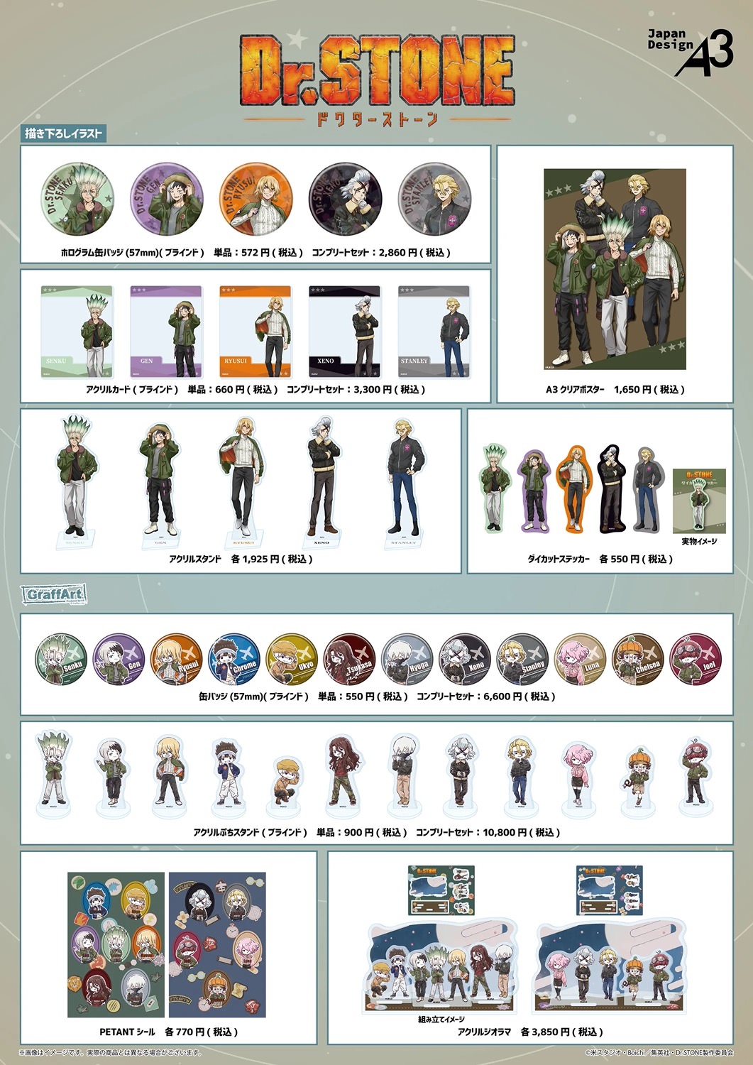 「稲垣理一郎 / Boichi」両先生原作の大人気TVアニメ「Dr.STONE (ドクターストーン)」× 株式会社A3のポップアップストアが、池袋スキマストアにて2025年10月29日〜11月11日まで開催される。