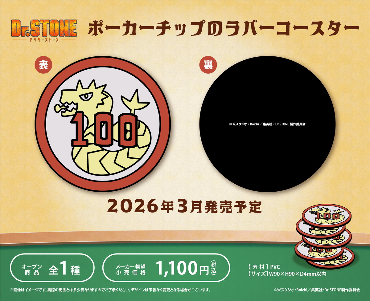 「稲垣理一郎 / Boichi」両先生原作の大人気TVアニメ「Dr.STONE (ドクターストーン)」から、龍水のポーカーをモチーフとした新作グッズが2026年3月に発売される。