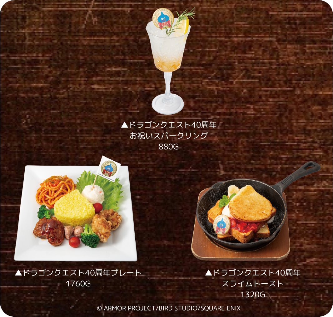 『ドラゴンクエスト40周年記念イベント』では、限定コラボメニューの提供をはじめ、スタンプラリー特典としてルイーダの酒場限定アイテムをご用意。