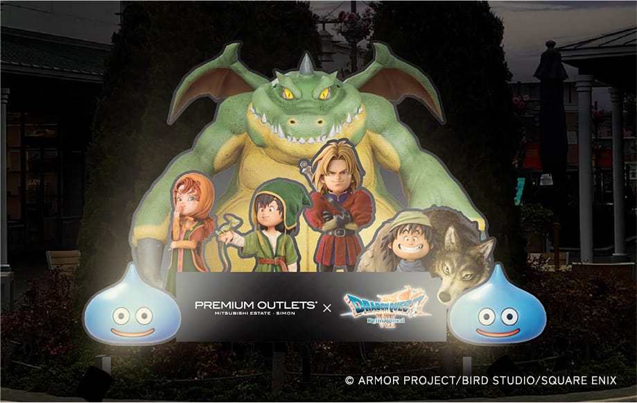 2025年11月7日より全国のプレミアムアウトレット10店舗にて開催される「ドラゴンクエスト」コラボでは、巨大なスライムや伝説の武器「ロトのつるぎ」のオブジェなどを設置。