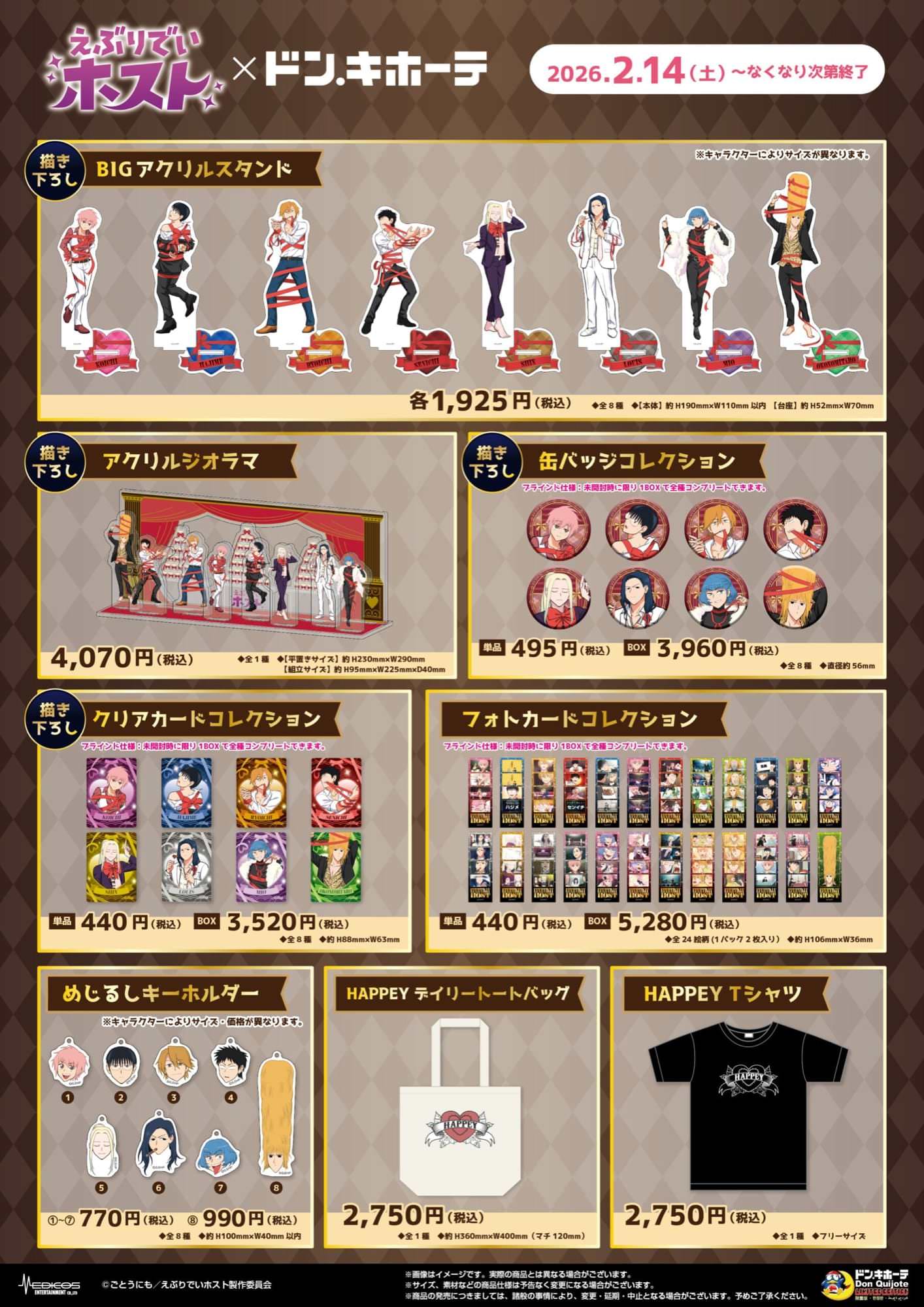 2026年2月18日より全国のドンキホーテにて、「えぶりでいホスト」のアパレルアイテムやコラボグッズを順次発売!