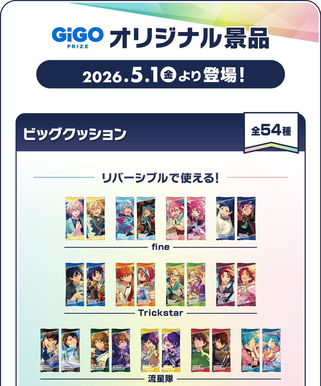 2026年5月1日〜5月31日までの期間、全国のGiGOにて開催される「あんさんぶるスターズ!!× GiGO」コラボキャンペーンでは、オリジナル景品が多数ラインナップ!