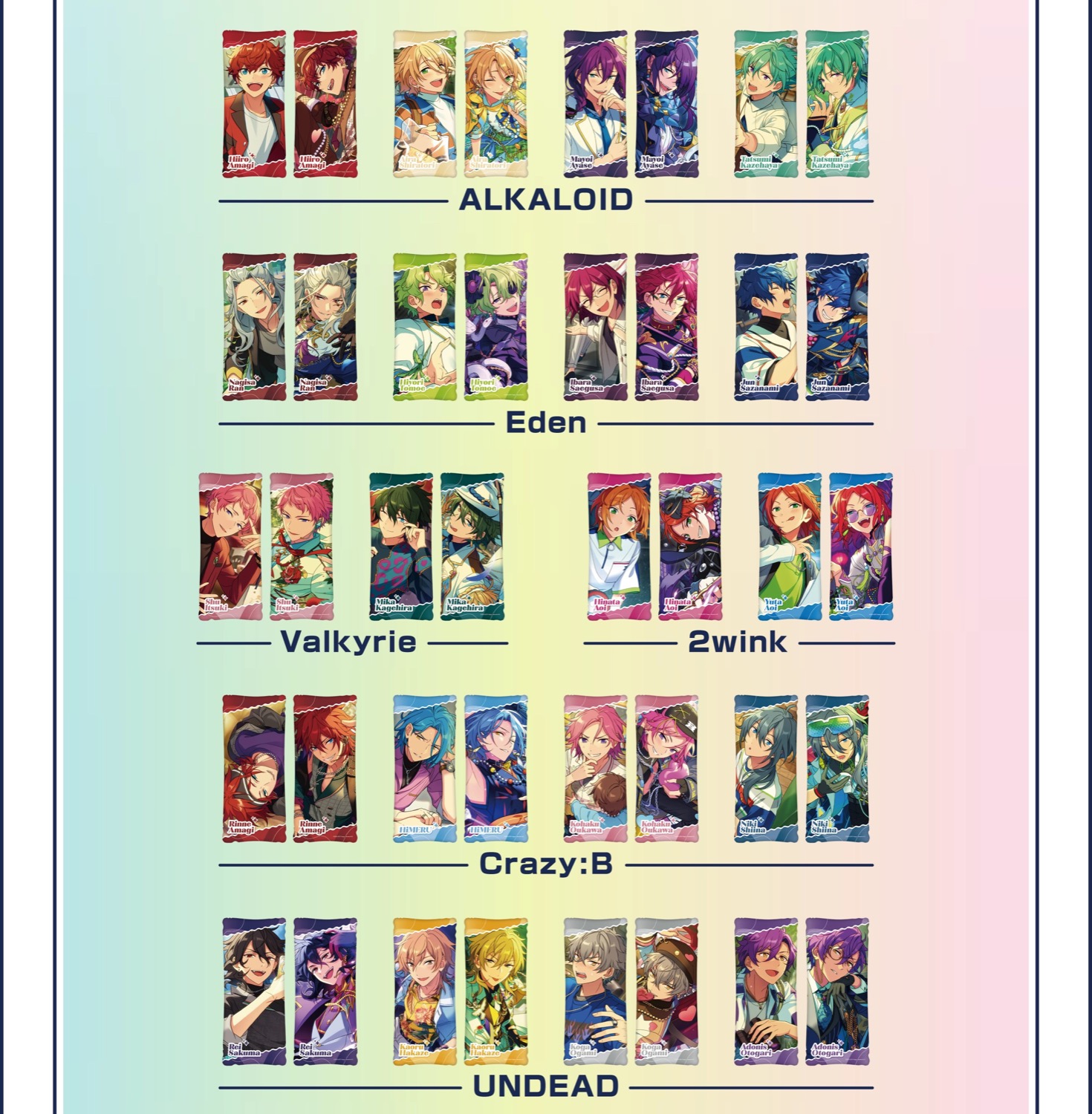 2026年5月1日より全国のGiGOにて開催される「あんさんぶるスターズ!!」コラボでは、対象景品に500円投入すると特典として「箔押しユニットポストカード」をA : 9種・B : 9種どちらかよりランダムに1枚プレゼント!