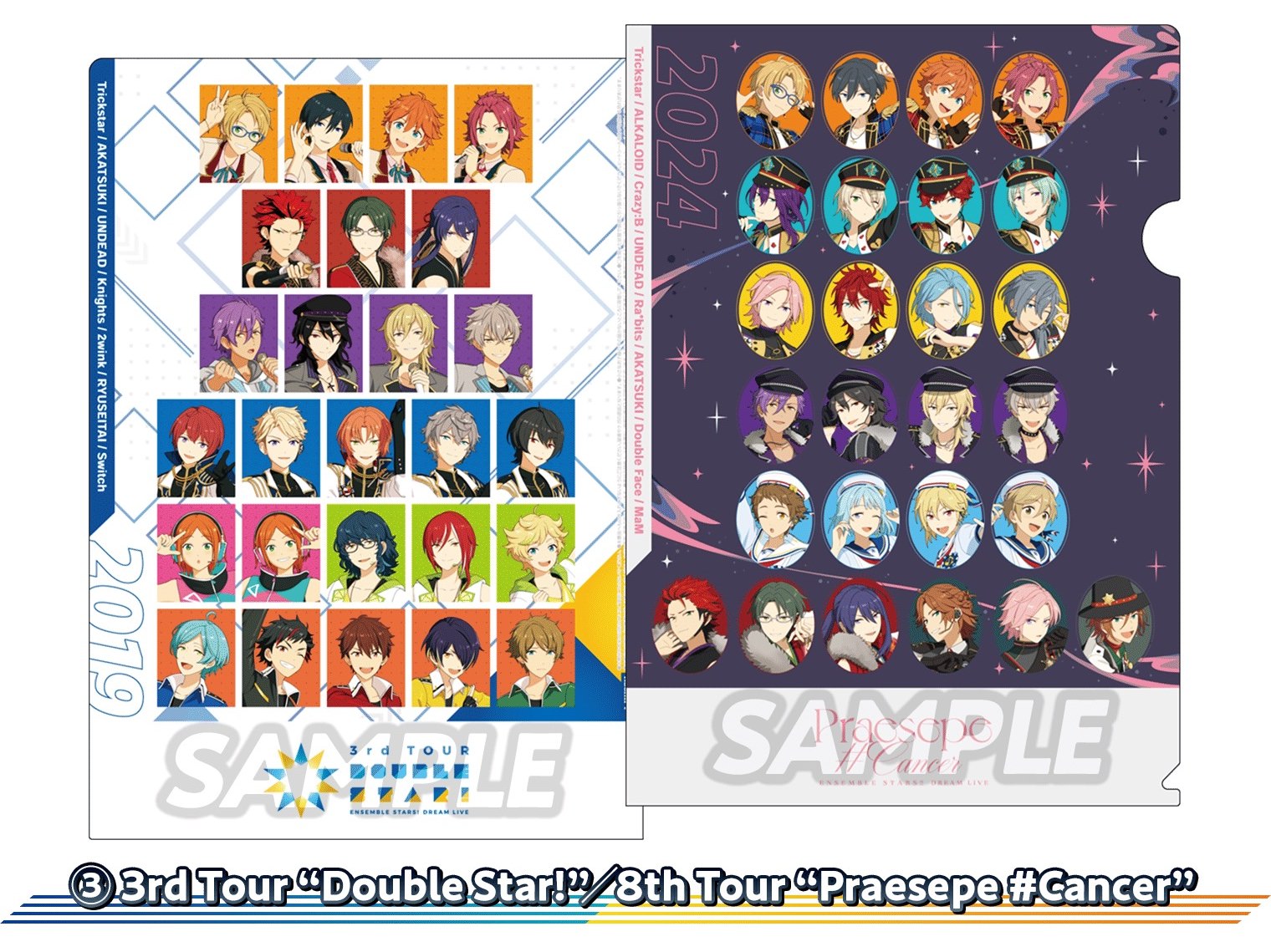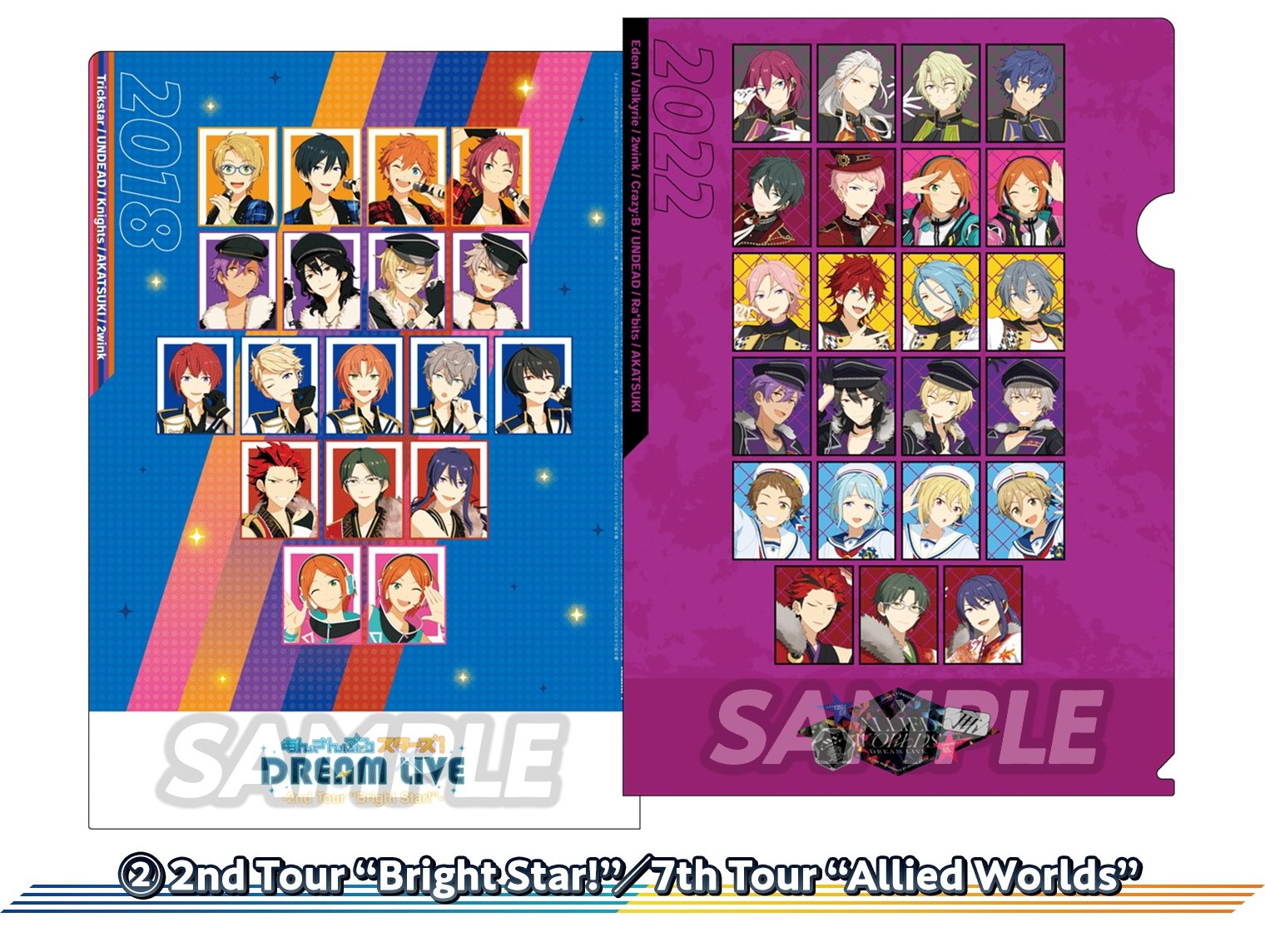 「あんスタ『スタライ』 × ローソン」では、対象商品を購入の方にこれまで開催された『スタライ』のビジュアルがデザインされた「あんスタ『スタライ』 クリアファイル」からお好きな絵柄を1枚プレゼント!