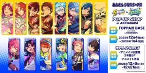 大人気スマホゲーム「あんさんぶるスターズ!! (あんスタ)」のポップアップストアが、東京・TOPPA!!! BASE AKIBAにて2025年12月4日〜2026年1月4日まで開催。「オーディション編」「メガストリーム編」登場キャラクターを中心としたグッズが多数ラインナップ!