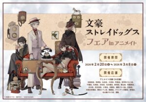 朝霧カフカ先生(原作)、春河35先生(作画)による人気漫画を原作とするTVアニメ「文豪ストレイドッグス (文スト)」の『文豪ストレイドックスフェア』が、全国のアニメイトにて2026年2月20日〜3月8日までの期間限定で開催される。フォーマルビジュアルを使用した新作グッズやオリジナルノベルティーが登場!