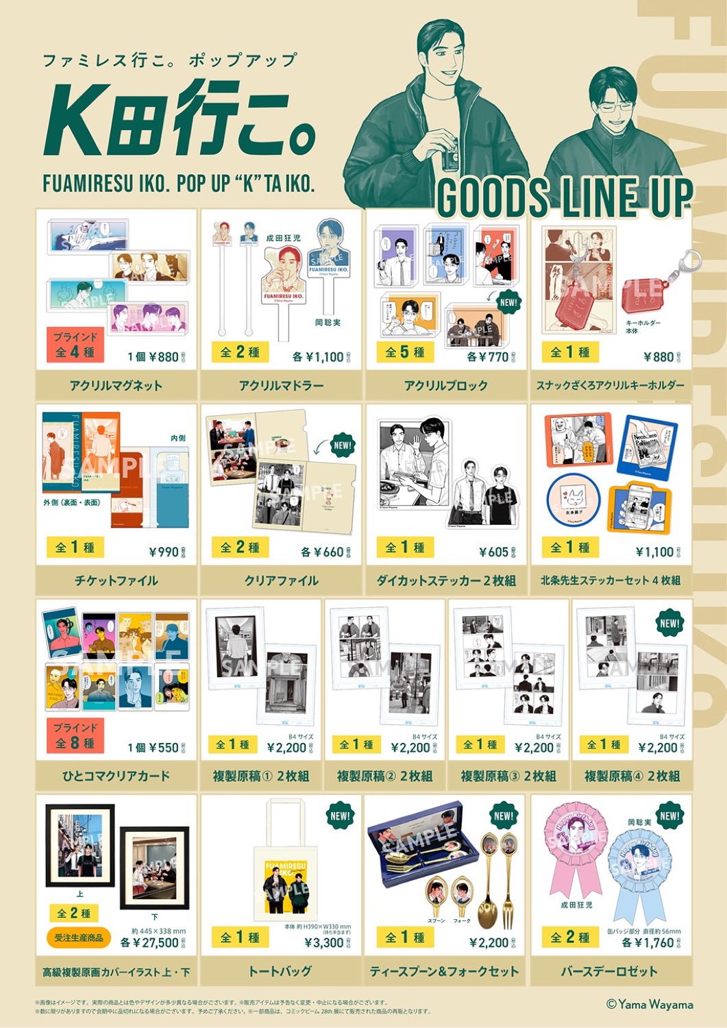「ファミレス行こ。」ポップアップストアでは、岡聡実・成田狂児たちのビジュアルや作中イラストを使用した新規グッズが多数販売!