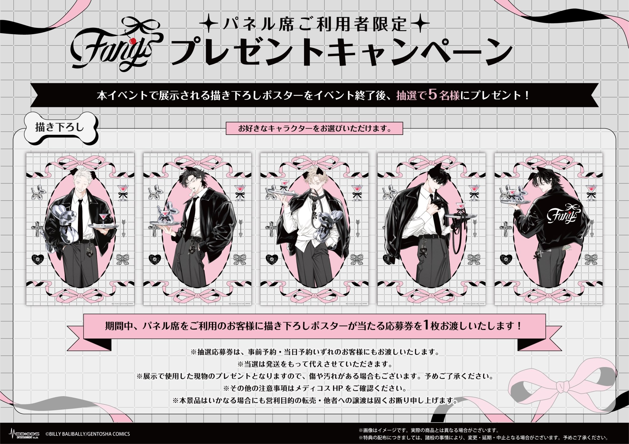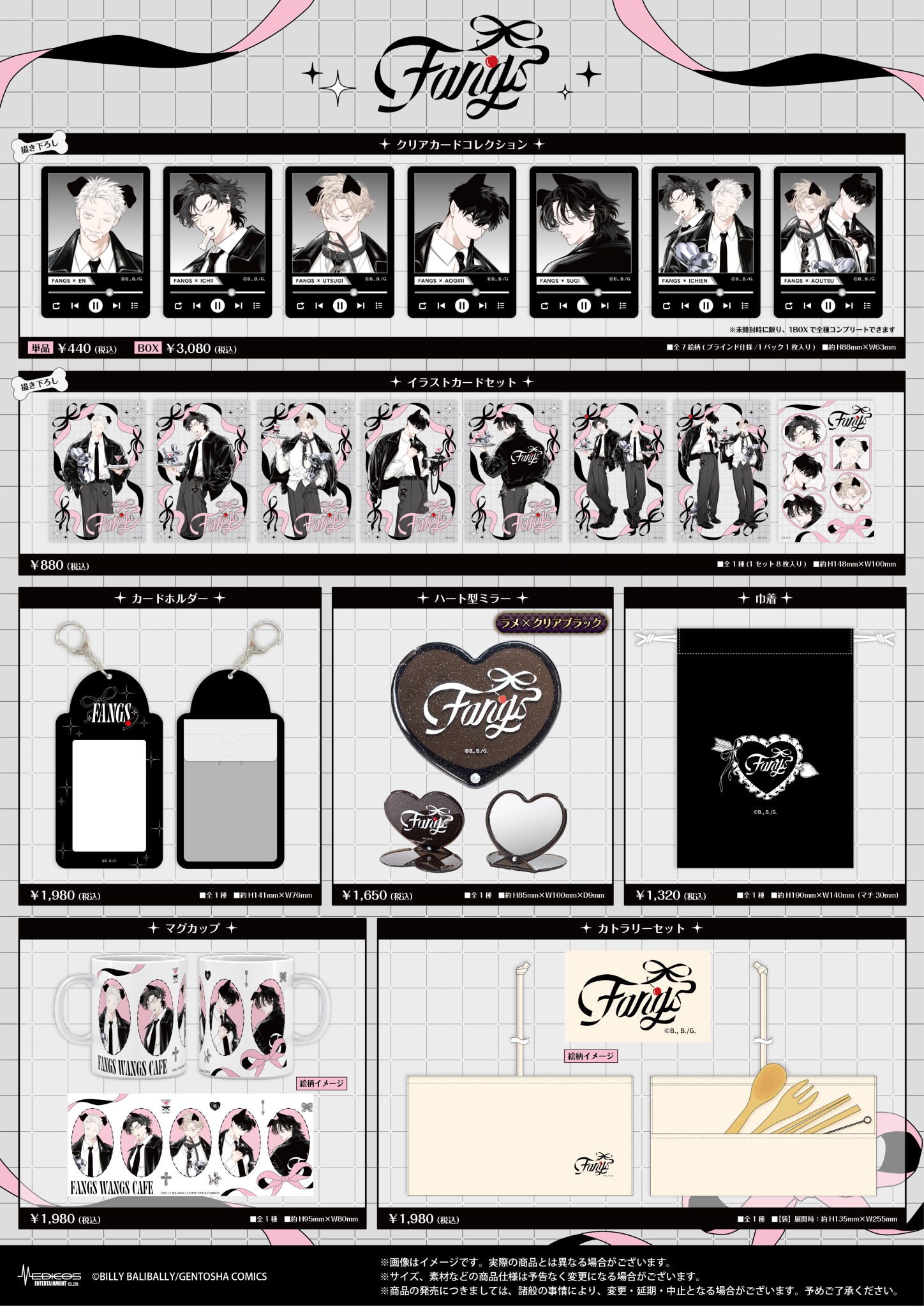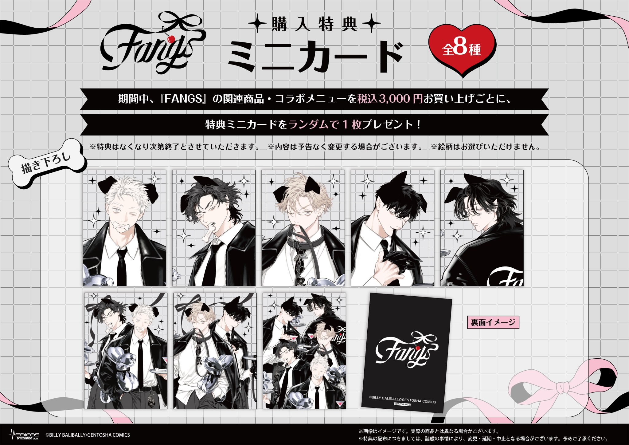 ビリー・バリバリー先生による、訳アリ先輩吸血鬼と新人吸血鬼の共生を描いた人気BL漫画「FANGS」× メディコス・エンタテインメントによるコラボレーションカフェ『FANGS WANGS CAFE』が、2026年4月24日より東京・大阪にて順次開催される。 (開催期間は店舗により異なります。)