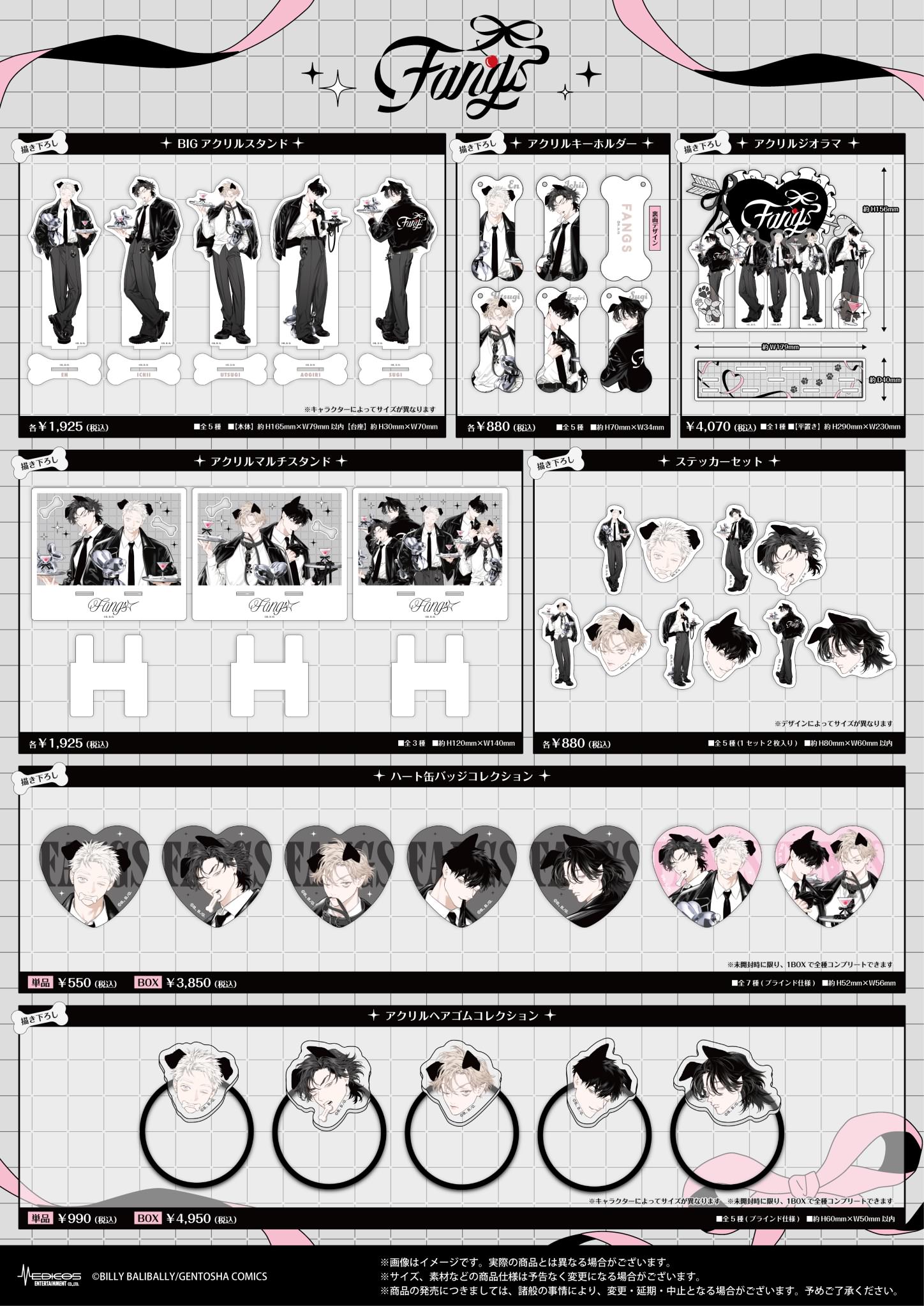 2026年4月24日より東京・大阪にて順次開催される「FANGS」カフェでは、エン・イチイ・ウツギ・アオギリ・スギのシックな描き下ろしイラストを使用した「BIG アクリルスタンド」や「アクリルキーホルダー」「アクリルジオラマ」などのコラボグッズが登場!