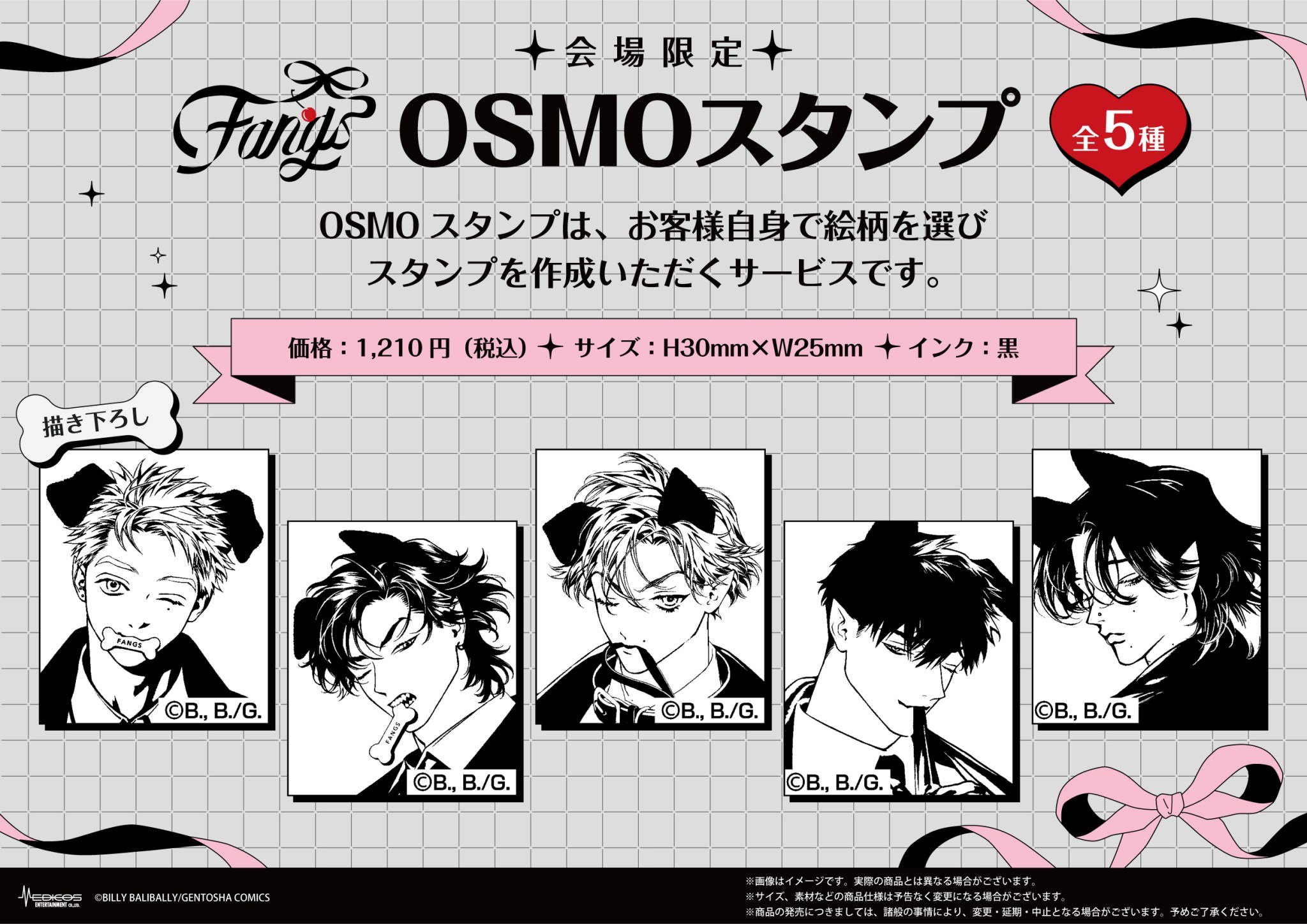 作中のエピソードをイメージした「殿下と団長のもう逃げられないブラックカレー」や「吸血パックドリンク」などの本格的なコラボメニューが楽しめるほか、描き下ろしビジュアルを使用した「BIGアクリルスタンド」や会場限定の「OSMOスタンプ」などのオリジナルグッズが登場。
