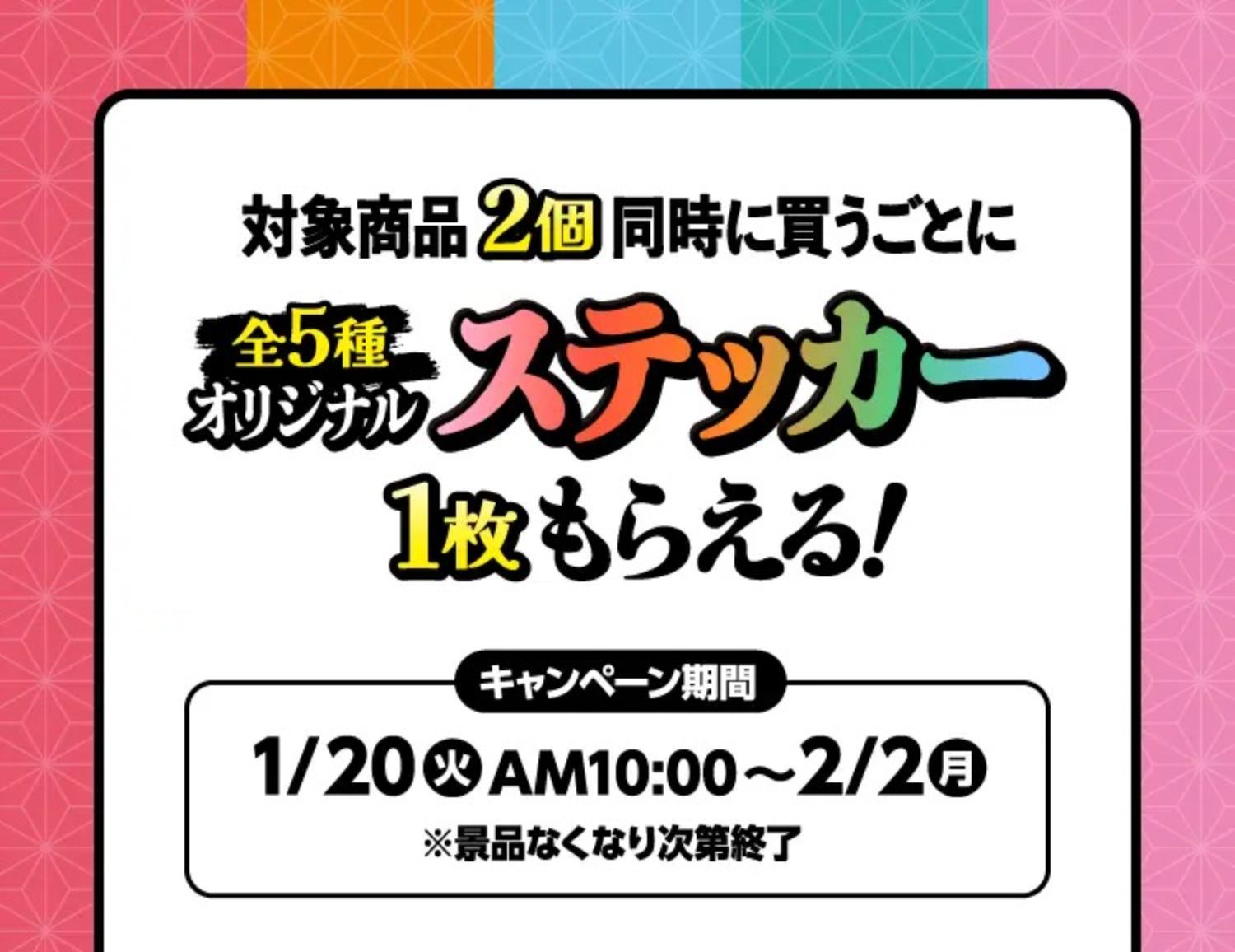 2026年1月20日より全国のファミリーマートにて開催される「FLOW GLOW」コラボキャンペーンでは、対象のカップ麺を一度の会計で2個(組み合わせ自由)同時に購入した方に「ステッカー 全5種」の中からお好きな1枚をプレゼント!