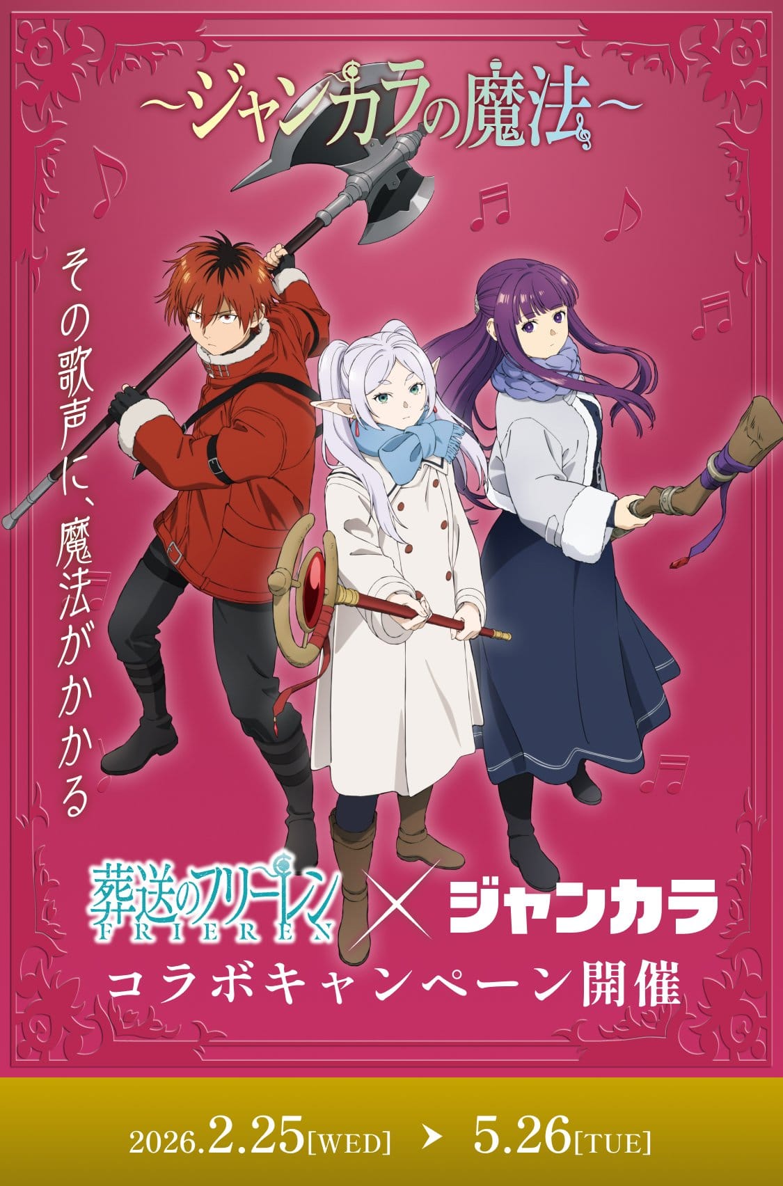 週刊少年サンデーにて連載中、「山田鐘人」「アベツカサ」両先生による大人気漫画を原作としたTVアニメ「葬送のフリーレン」× カラオケBOX「ジャンカラ」全国にて、2026年2月25日〜5月26日までコラボキャンペーンが開催される。