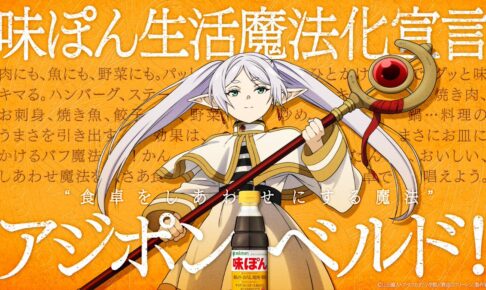 2023年11月より、「葬送のフリーレン」とミツカン「味ぽん」のコラボ企画がスタート。かけるだけで食卓をしあわせにする魔法“アジポンベルド”を操る(?)フリーレンのビジュアルが公開された。