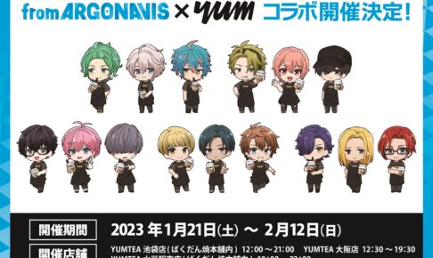 ブシロードが贈るボーイズバンドのメディアミックスプロジェクト「from ARGONAVIS (フロム アルゴナビス)」× 台湾発ティースタンド「YUMTEA池袋・大阪・水戸」にて2023年1月21日〜2月12日までコラボ第2弾が開催される。