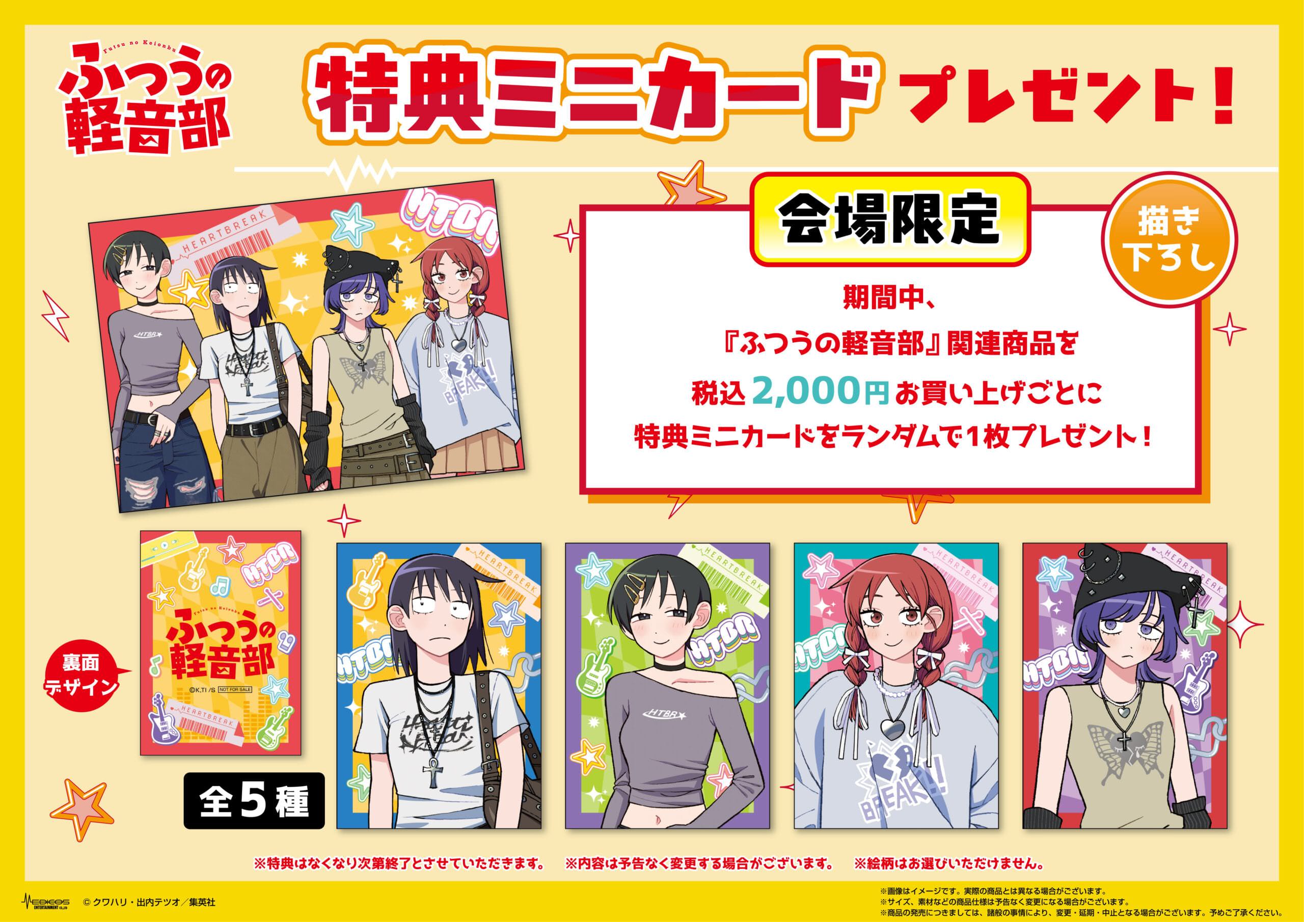 「ふつうの軽音部」ポップアップストアにて、グッズをお買い上げ2,000円毎に特典として「ミニカード 全5種」がランダムに1枚プレゼントされる。