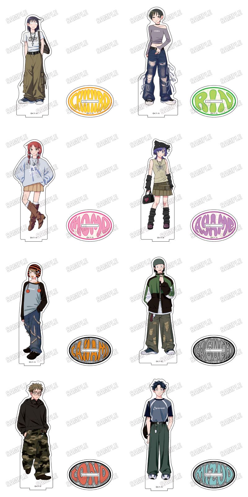 「缶バッジコレクション」「アクリルキーホルダーコレクション」などBOX商品のほか、推しを並べて飾りたい「BIGアクリルスタンド」や、大人かわいく着こなせる「Tシャツ」など全17種がラインナップ。