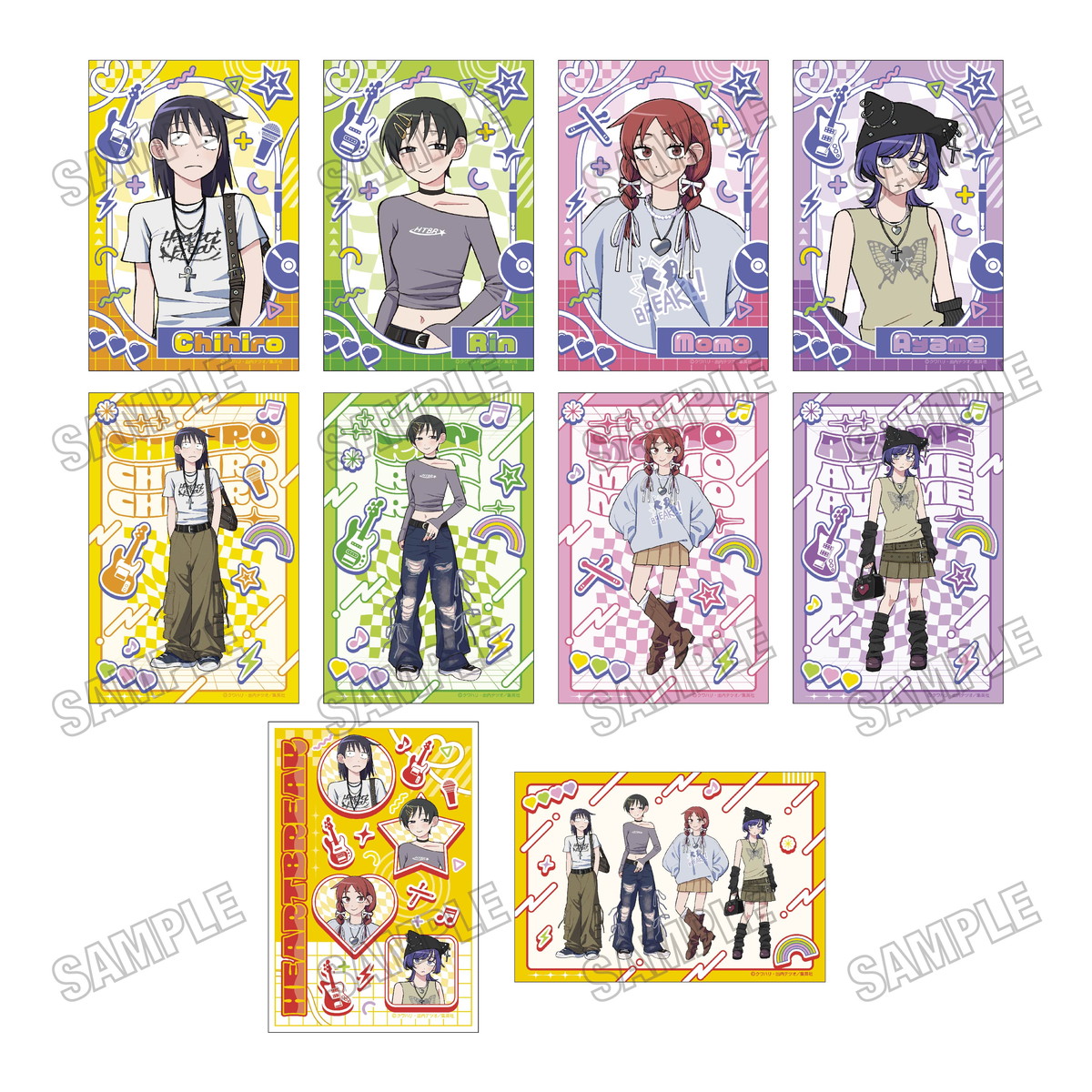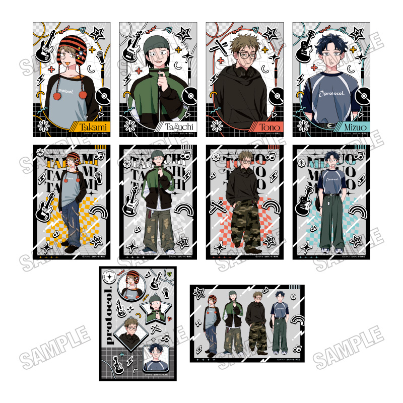 おめかし姿を描いた、鳩野ちひろ・内田 桃・幸山 厘・藤井彩目ら「はーとぶれいく」の4人をはじめ、鷹見項希・田口流哉・遠野元・水尾春一ら「protocol.」メンバーを描いた限定グッズが新登場。