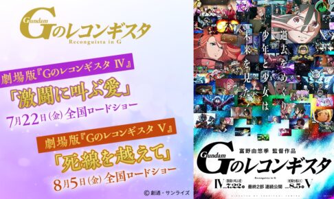 「機動戦士ガンダム」の富野由悠季監督が、2014年に手がけたテレビシリーズ「ガンダム Gのレコンギスタ」を再構築した全5部作からなる劇場版「Gのレコンギスタ」第4弾“激闘に叫ぶ愛”が2022年7月22日に、第5弾“死線を越えて”が8月5日に公開されることが発表された。
