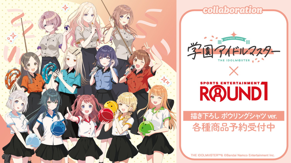 スマートフォン・PC用ゲームアプリ「学園アイドルマスター (学マス)」×「ROUND1 (ラウンドワン)」より、新規描き下ろしイラスト「ボウリングシャツ Ver.」 の新作グッズが2026年1月に一般発売される。