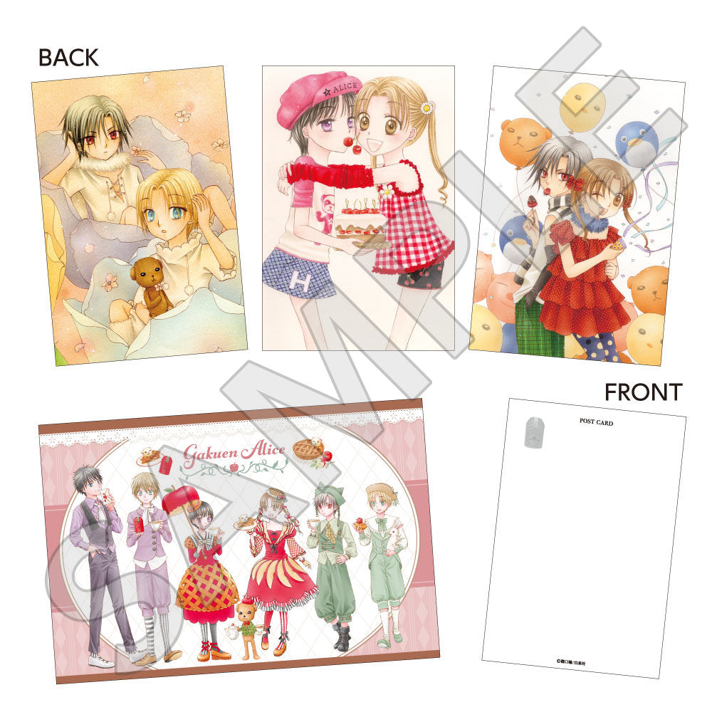 「学園アリス」ポップアップストアにて、グッズをお買い上げ2,000円(税込)毎に特典として「イラストカード 全12種」がランダムに1枚プレゼントされる。