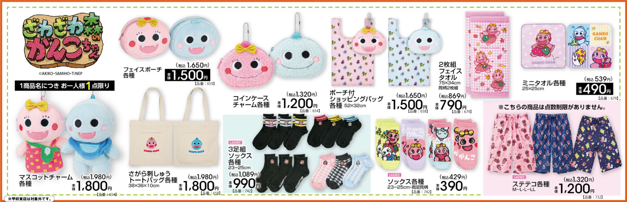 がんこちゃん × Avail(アベイル)全国のグッズラインナップ