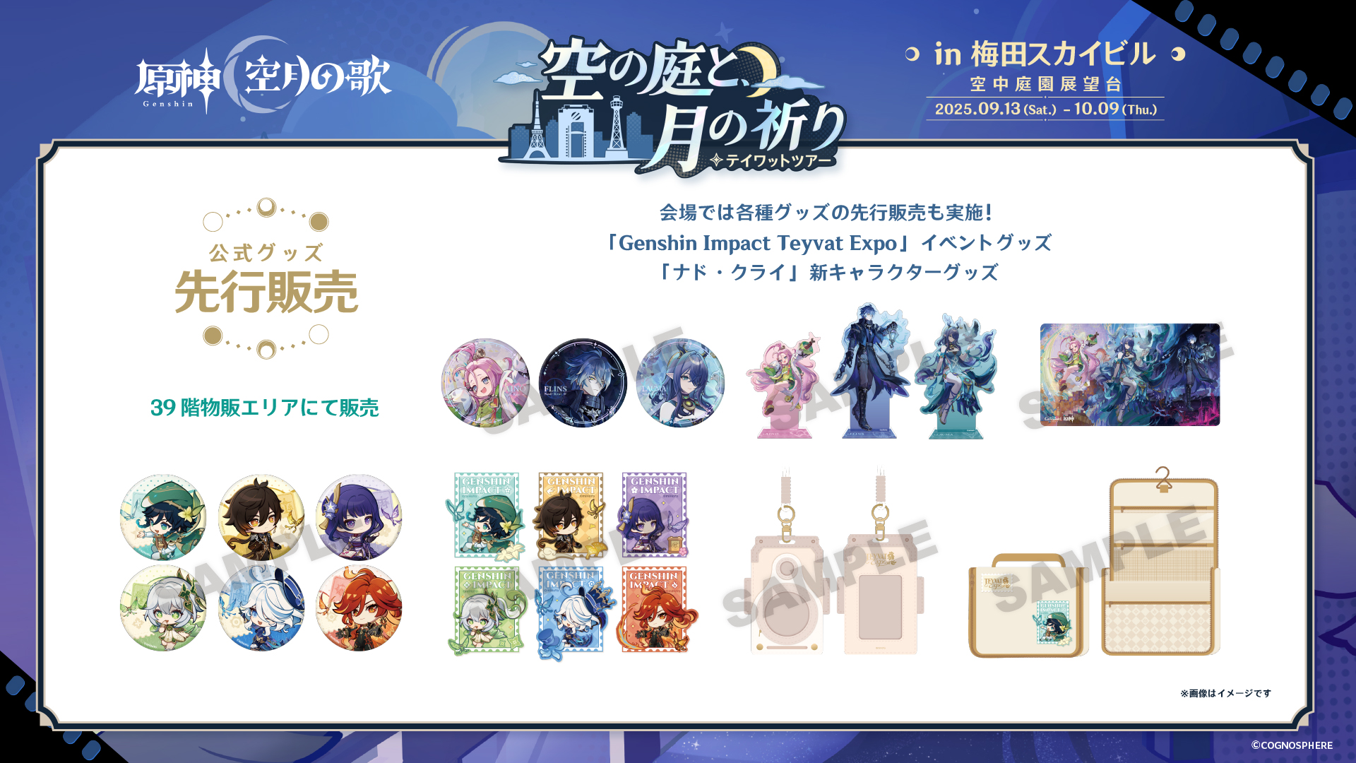 また、『原神』公式のナド・クライグッズや、フランス・パリで2025年9月13日より開催予定の「Genshin Impact Teyvat Expo」で発売予定のグッズの同時販売も予定しております。