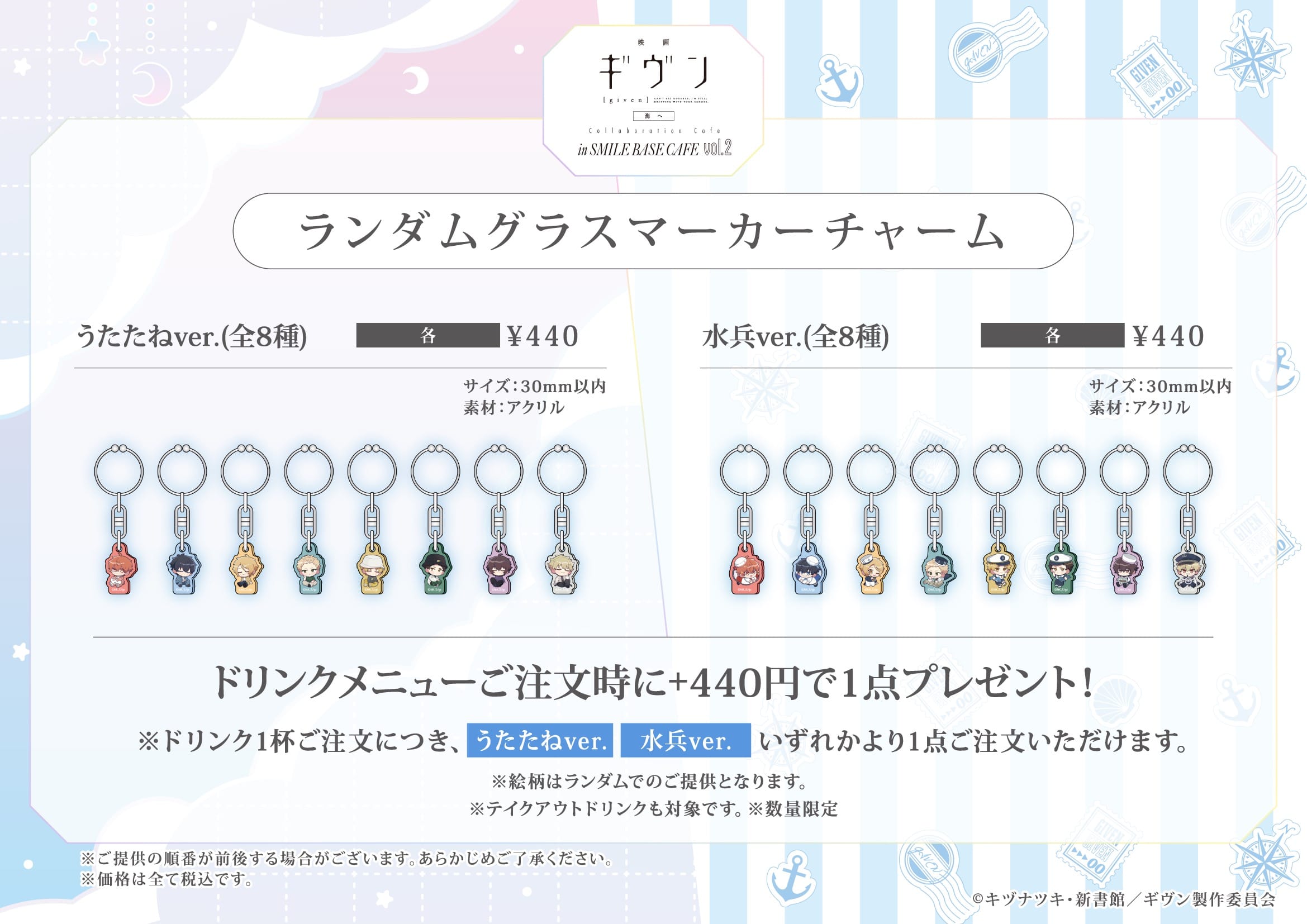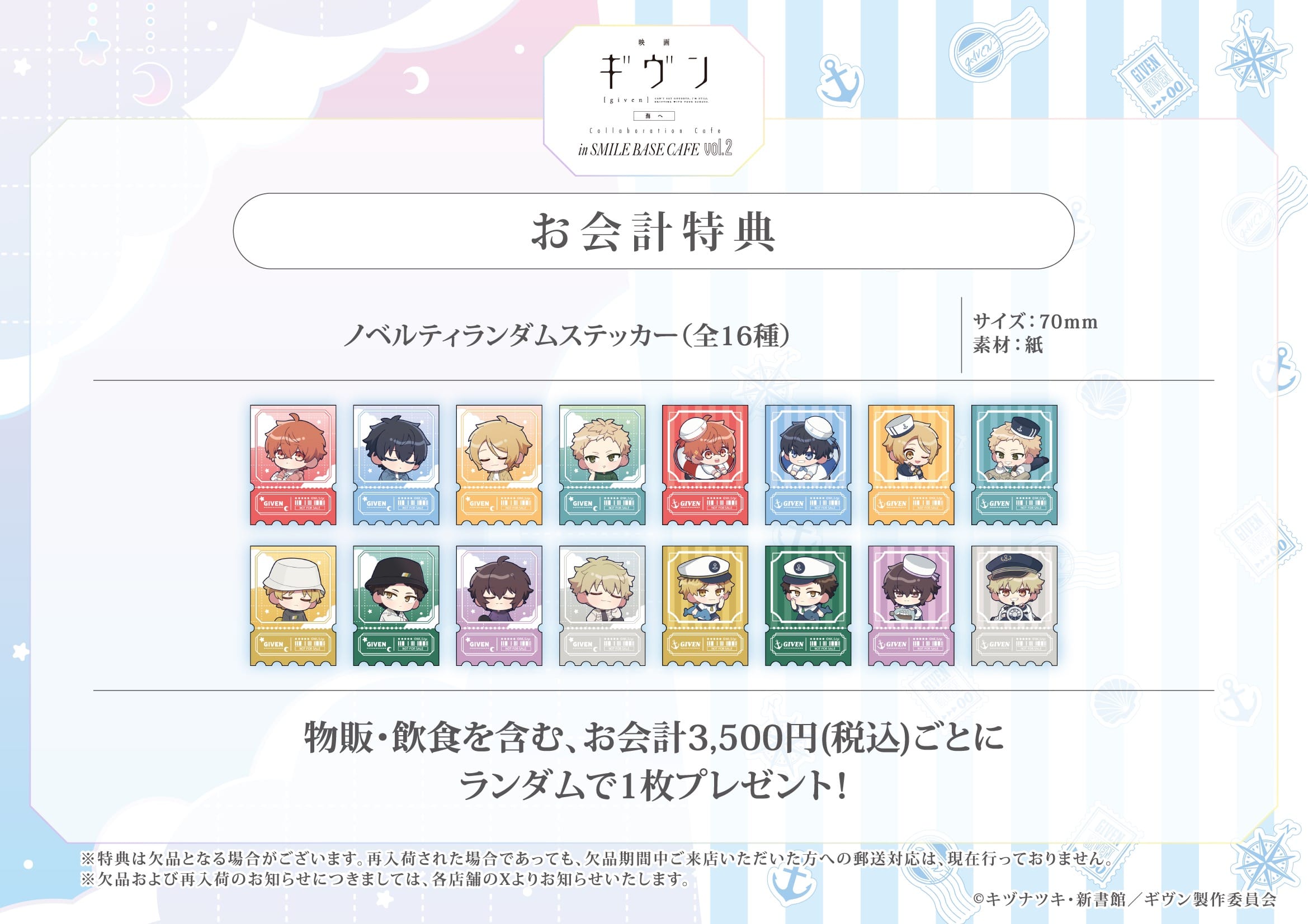 ギヴン 海へ カフェ in SMILE BASE CAFE3店舗のノベルティー