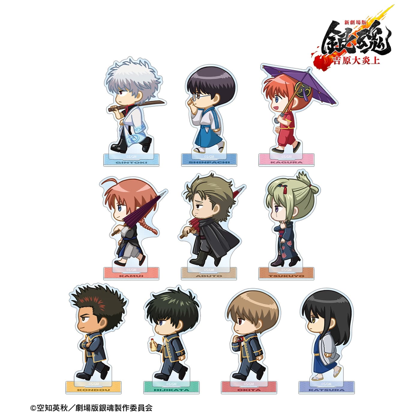 銀時や神威ら「吉原炎上編」のメインキャラクターたちが、等身イラストとデフォルメの2種でラインナップする。