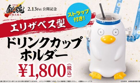 空知英秋先生による“SF人情なんちゃって時代劇コメディー”漫画を原作とする映画『新劇場版 銀魂 -吉原大炎上-』の上映開始日より販売されるも、大好評につき完売していた「エリザベス型ドリンクカップホルダー(ストラップ付き)」が、2026年2月20日より再販売!