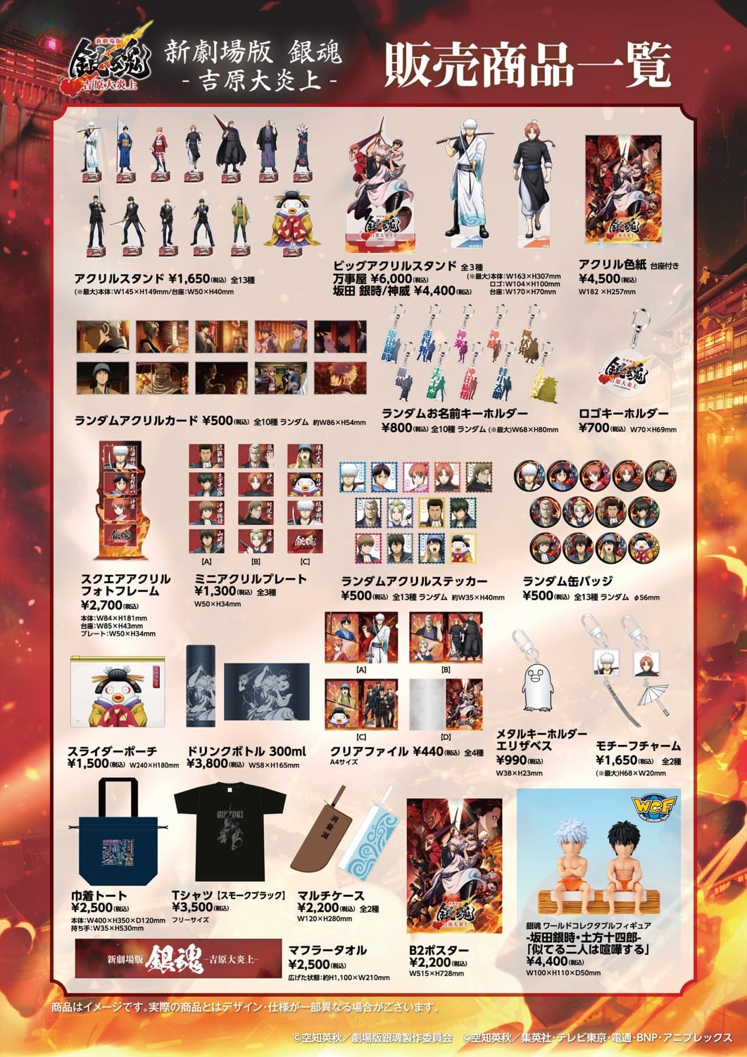 『新劇場版 銀魂 -吉原大炎上-』劇場グッズには、万事屋や真選組・夜兎族の面々や劇場版タイトルロゴをデザインしたオリジナルグッズが多数ラインナップ!