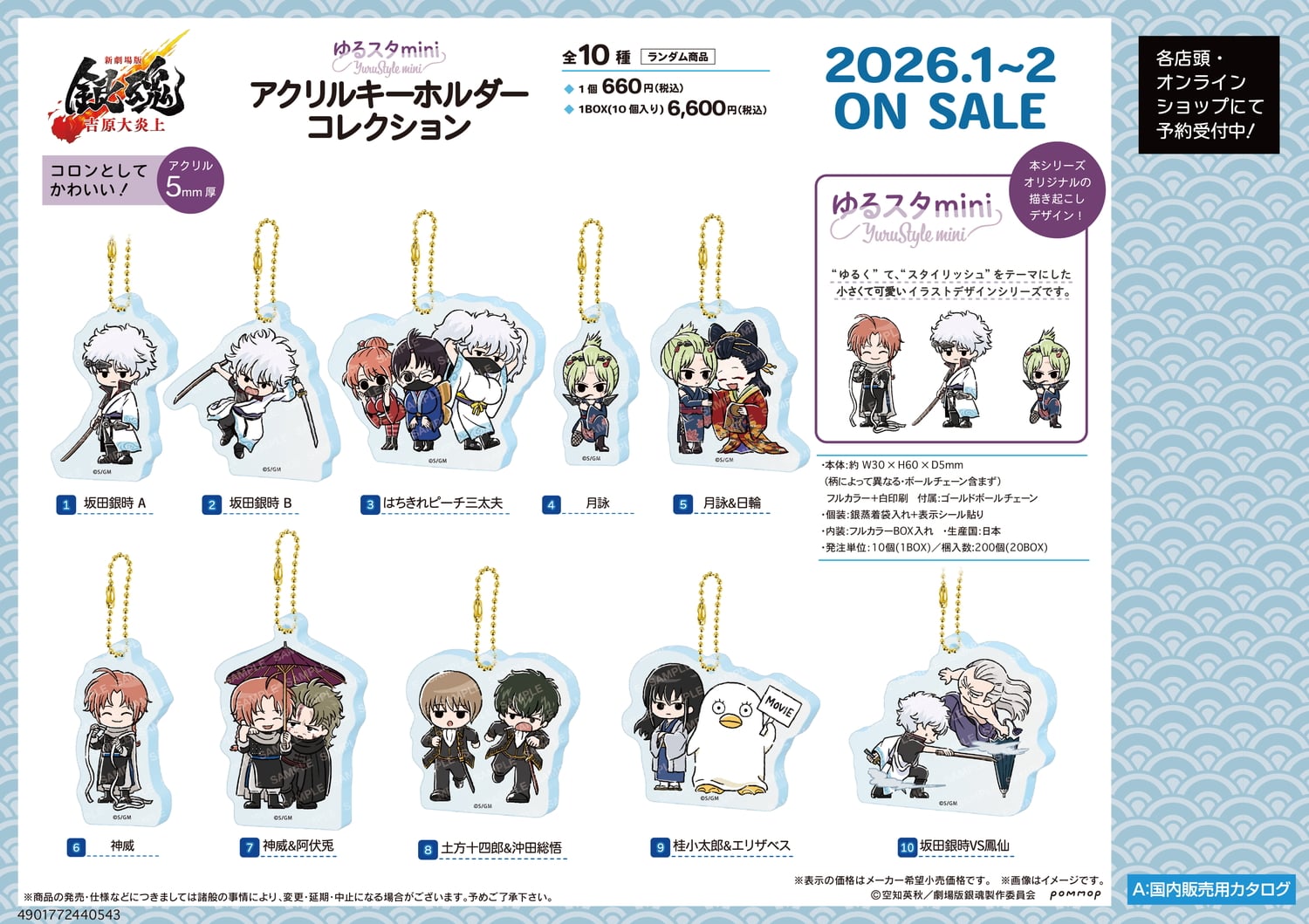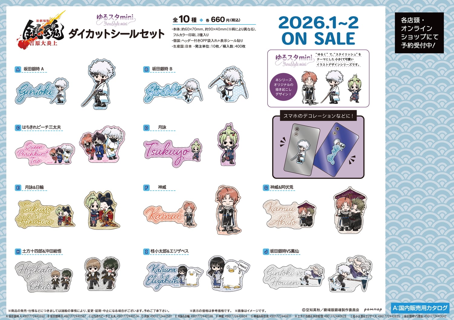 空知英秋先生による“SF人情なんちゃって時代劇コメディー”漫画『銀魂』の人気エピソード「吉原炎上篇」を完全新作で描く『新劇場版 銀魂 -吉原大炎上-』より、「ゆるスタmini」新作グッズが登場した。