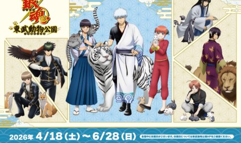 2026年4月18日〜6月28日までの期間開催される「銀魂 × 東武動物公園」コラボでは、銀さんや土方・神威・桂たちが動物と戯れる描き下ろしイラストを使用したコラボグッズが登場!