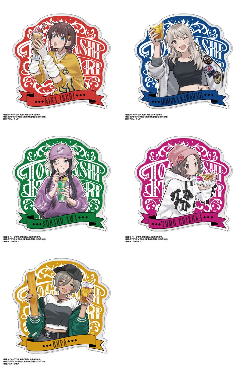 仁菜、桃香、すばる、智、ルパらトゲナシトゲアリのメンバーたちがパブを満喫する様子を描いた、酒井香澄氏による描き下ろしイラストを使用した「缶バッジ」「アクリルスタンド」「アクリルコースター」「B2タペストリー」など多数ラインナップ。