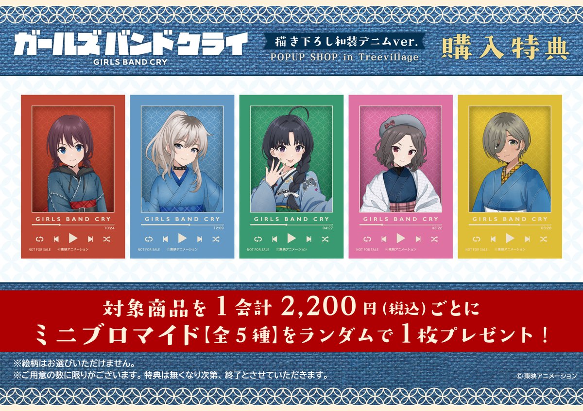 2026年2月27日より「ツリービレッジ東京店」にて、アニメ「ガールズバンドクライ」の「和装デニムver.」描き下ろしグッズを販売するポップアップストアを開催!