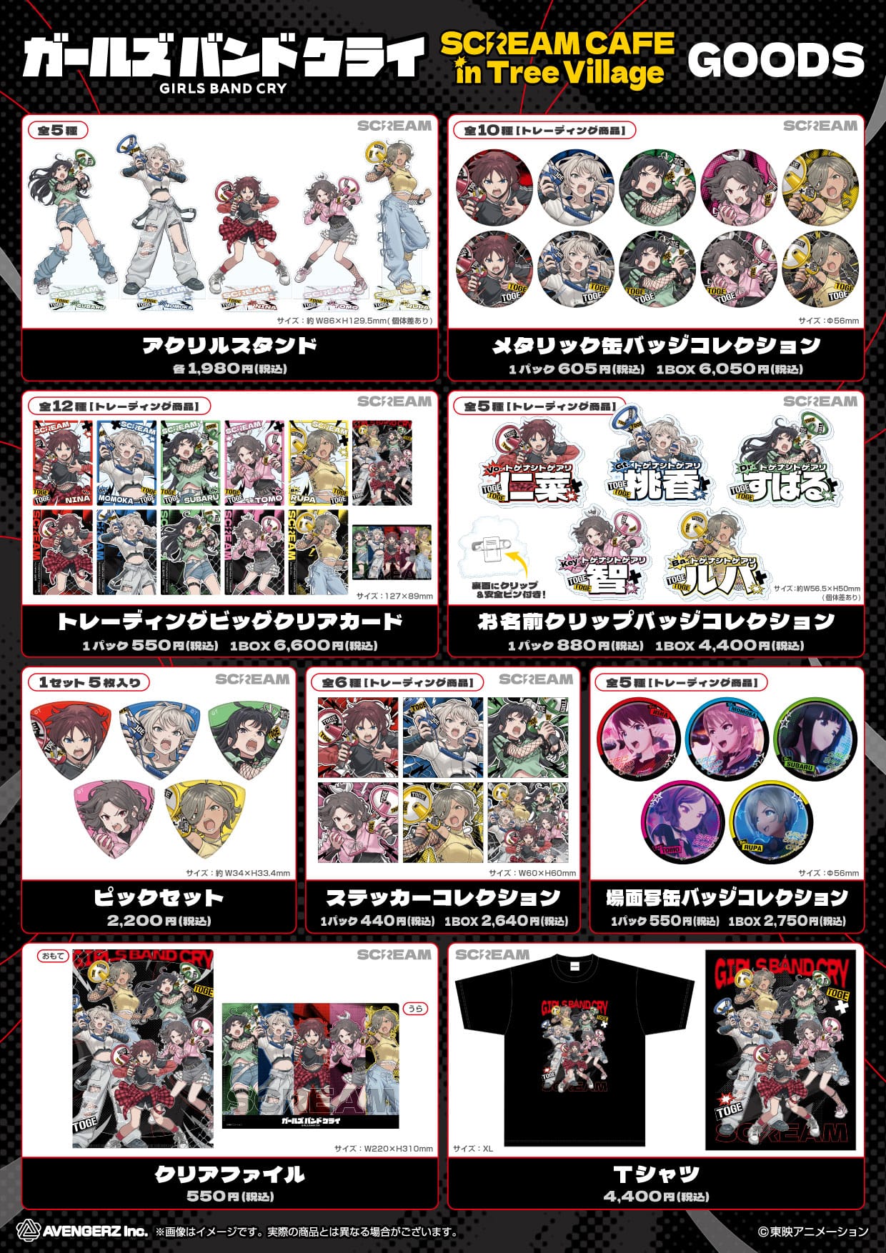 2026年4月4日より開催される「ガールズバンドクライ」カフェでは、作画監督の酒井香澄さんによる描き下ろしイラスト「SCREAM」を使用したコラボカフェ限定グッズが多数登場。