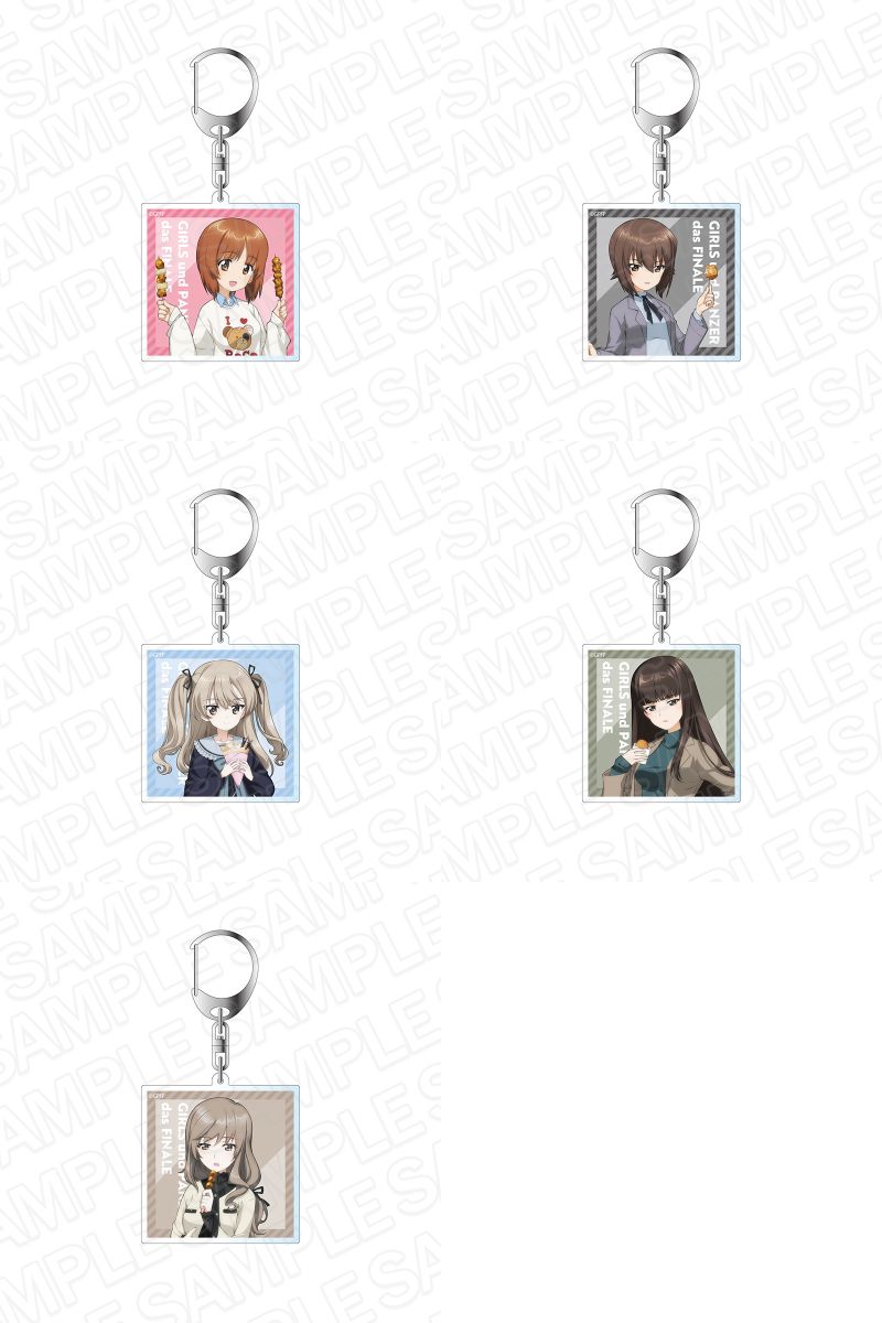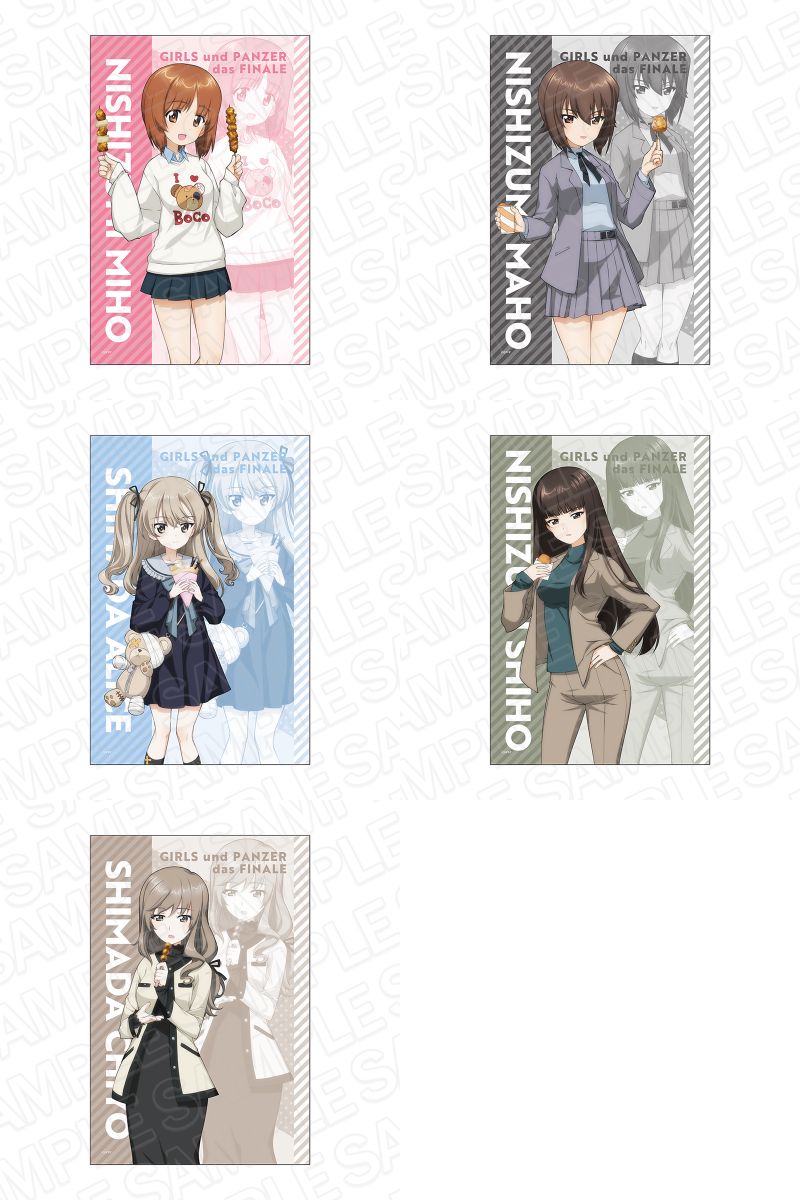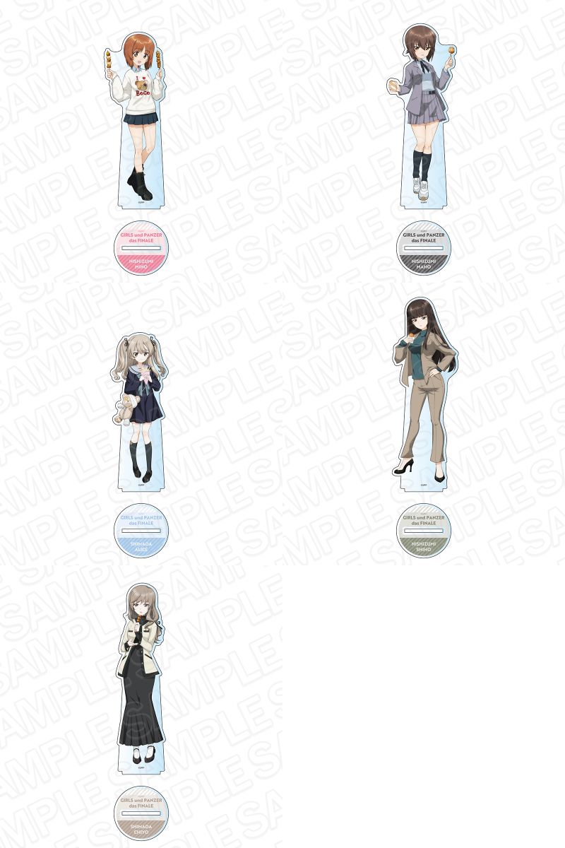 「食べ歩き」をテーマとした、西住みほ、西住まほ、西住しほ、島田愛里寿、島田千代ら西住家・島田家の生徒と母親たちを描いた「カンバッジ」や「デカアクリルスタンド」、「ミニアクリルアート」「特大タペストリー」など全10種がラインナップ。