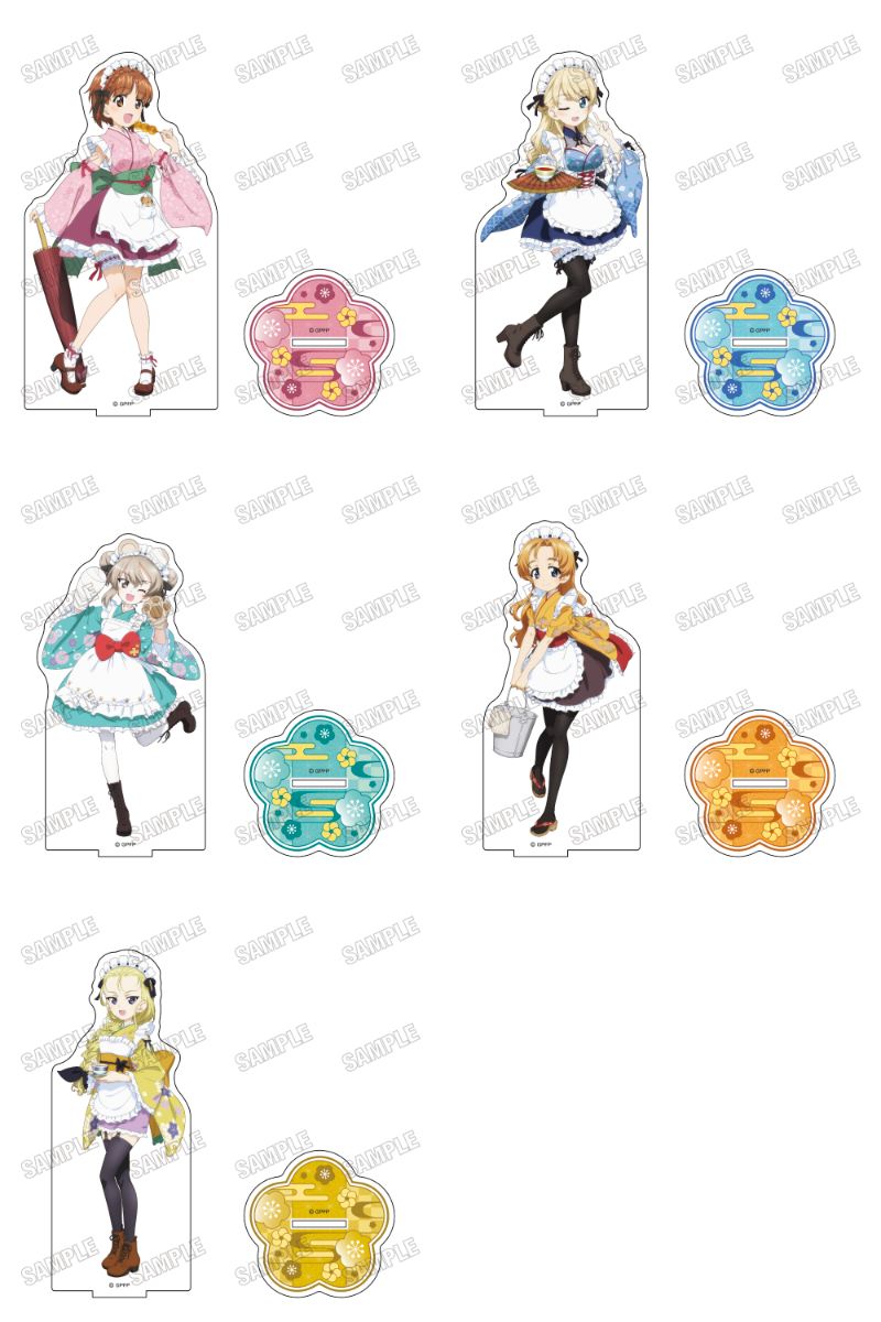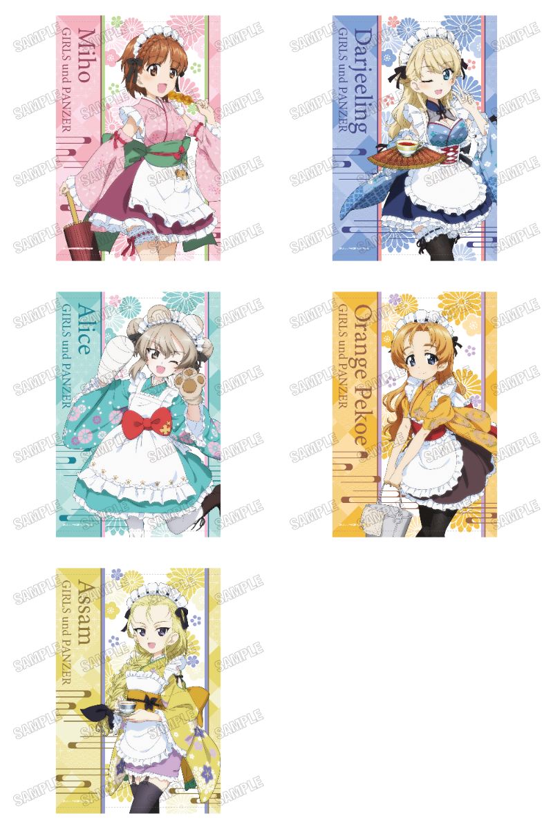 『和風メイド』をテーマとし、西住 みほ、ダージリン、島田 愛里寿、オレンジペコ、アッサムら5人の新規描き下ろしイラストを使用した「缶バッジコレクション」「BIGアクリルスタンド」「B2 & 等身大タペストリー」など全9種がラインナップ。